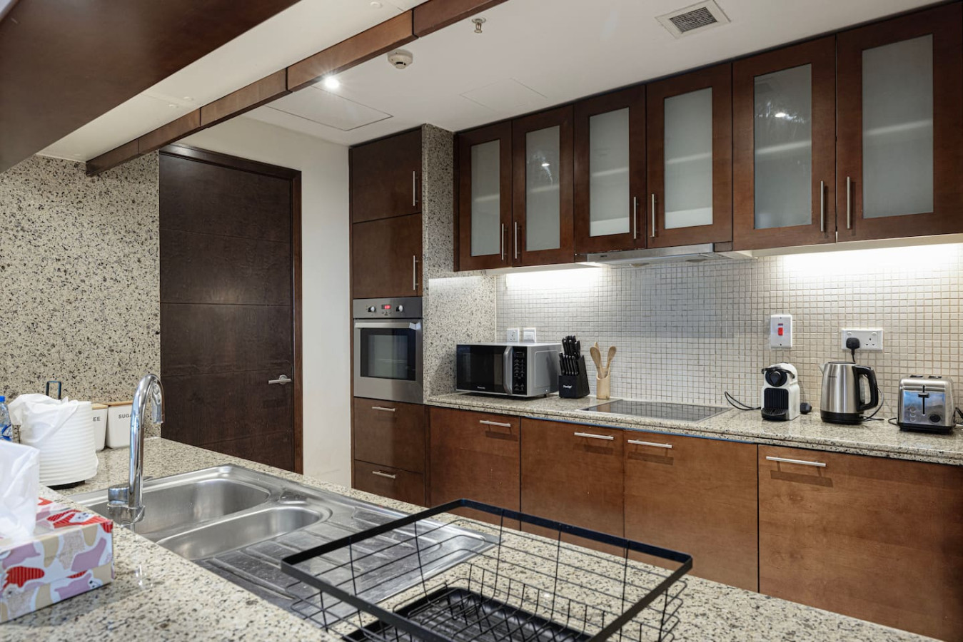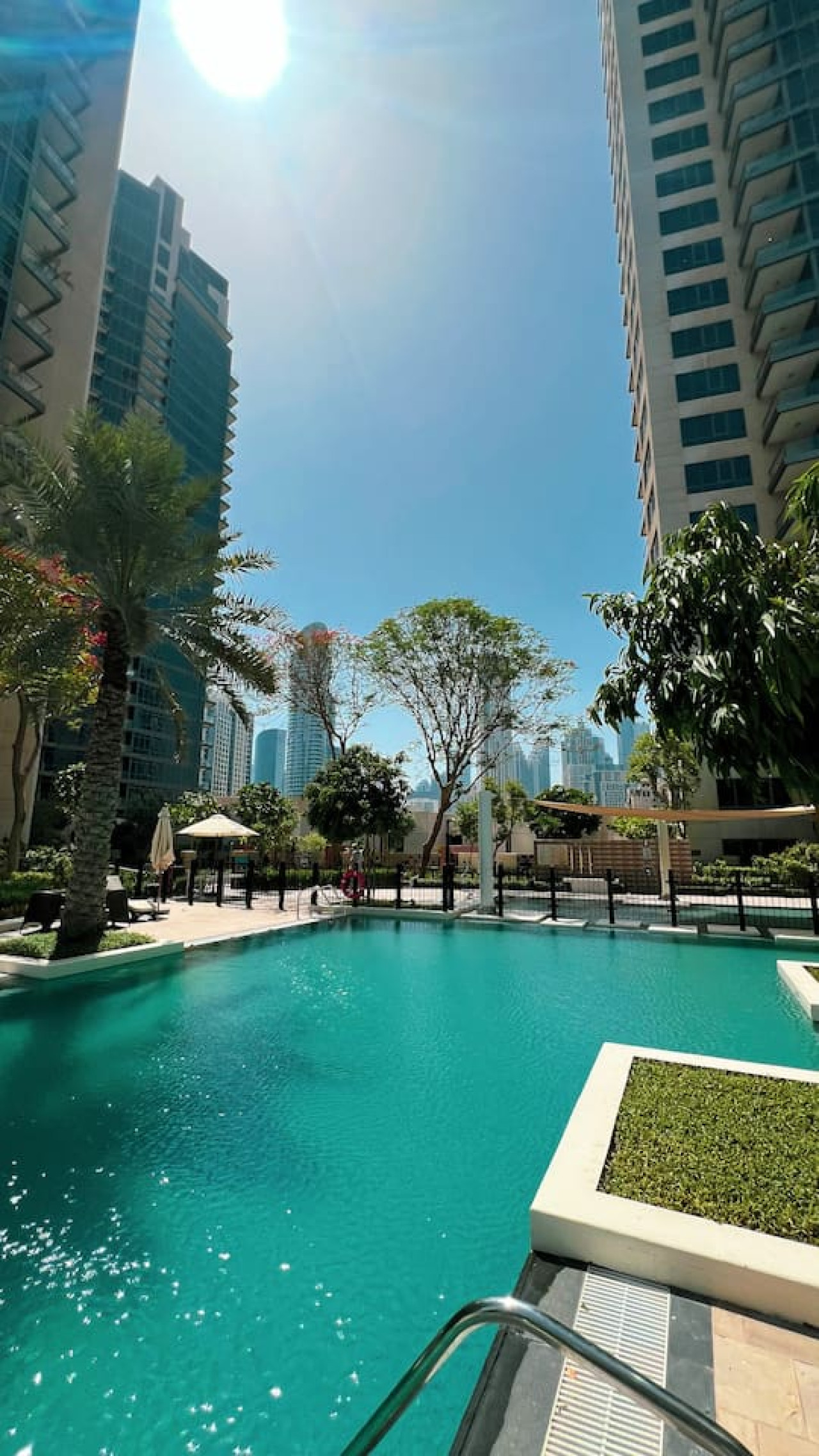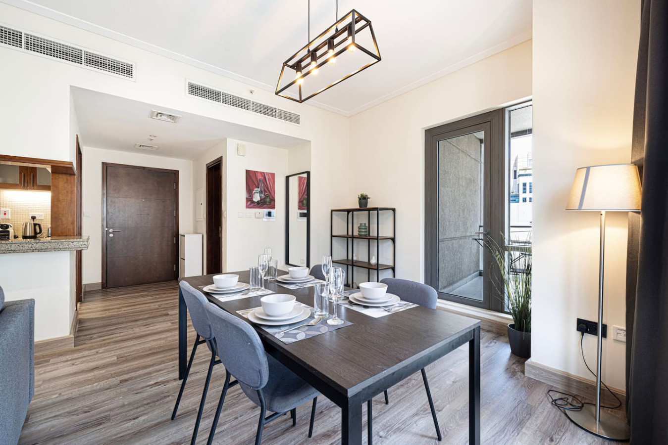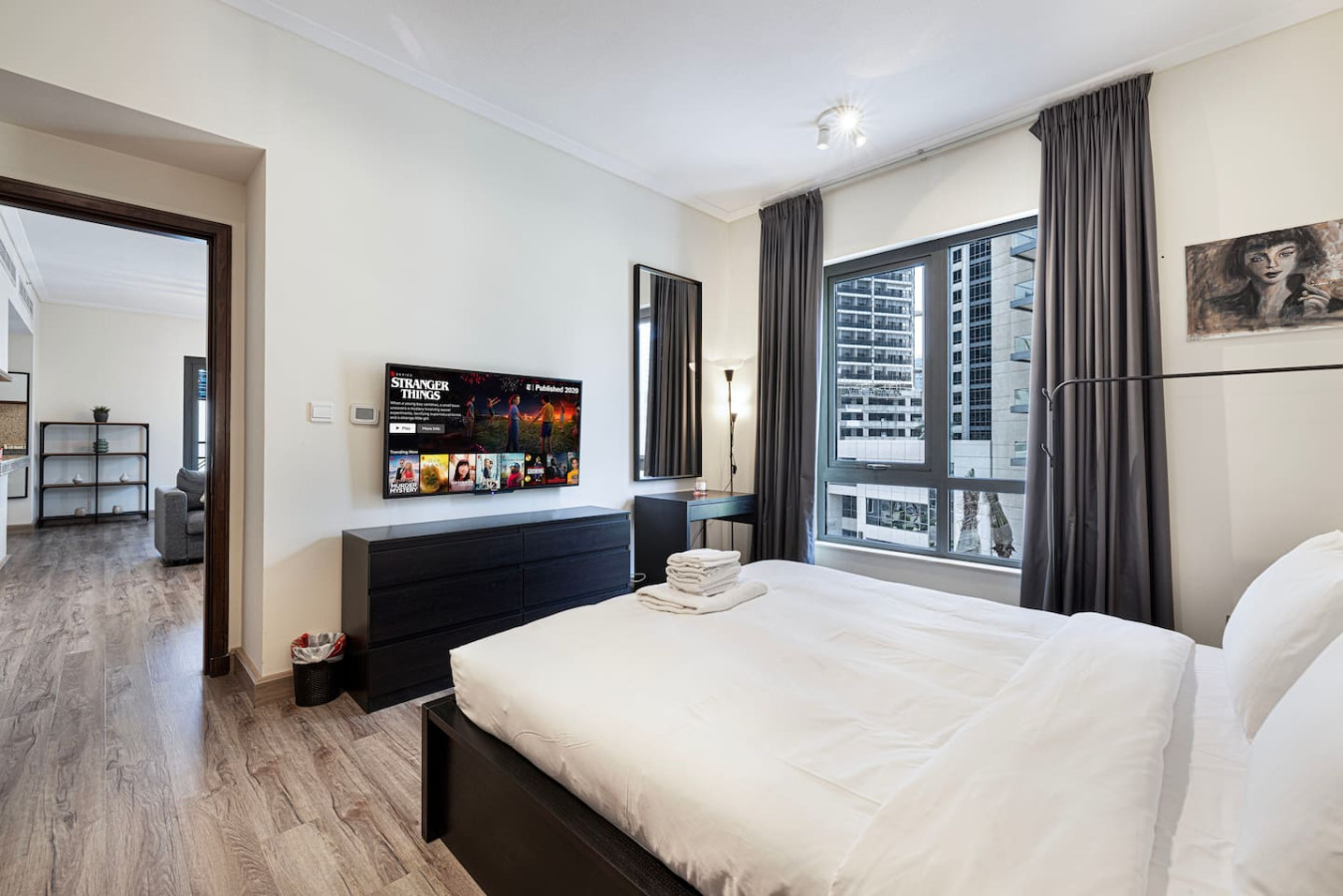 If you're looking for a modern newly furnished and comfortable apartment in Downtown Dubai, this is the one for you! Located centrally in the heart of Downtown & BLVD you will be in close to Dubai Mall, Burj Khalifa & Dubai Opera in the South Ridge tower 4. You will enjoy easy access to everything from this centrally located place. – 5 minutes walk from Dubai Mall – 5 minutes walk from Dubai Mall metro Station – supermarkets in the building Enjoy Dubai Our spacious 1-bedroom Dubai apartment is furbished with lovely furniture and decorations would undoubtedly make you feel at home This place is naturally w ell-lit, Sit back and lounge on the comfy couch while being entertained by the wall-mounted Cable TV. This area comes complete with a Soft rug, wooden center table, indoor plant & pendant light. Cook your meals in the fully functional kitchen equipped with a stove, microwave, toaster, kettle, coffee maker, fridge, cutleries, cookware, and dishwasher. Serve the meal and dine in together with your loved ones on this beautiful wooden dining table paired with 4 upholstered dining chairs. Munch your morning breakfast or evening snacks on the kitchen counter As you walk your way to the bedroom you will be welcomed with a King-sized bed fitted with fresh linens, soft pillows, and a cozy mattress to help you sleep better. The room comes complete with side lamps, wall art, vanity space & a sofa with a TV. The bathroom is packed with soft towels, shampoo, conditioner, shower gel, and body lotion. – One bedroom with king bed – Living Room with Sofa Bed and Sofa – Large living area/dining area – Large smart TV in the living room – Fully equipped kitchen – Brand NEW high-end GYM – Indoor children's play are Only a short walk away from Dubai Mall, the Fountain Show, The Boulevard and the Burj Khalifa herself – you are sure to enjoy your time in this exquisite apartment in the South Ridge 4 tower. We look forward to hosting your stay! Guests have full access to pool, gym and parking for free. we are always available to support face to face or over the phone . In the heart of Dubai Down Town across the street from Burj Khalifa – South Ridge 4 tower Metro or taxi or bicycle or you can also rent a scoter *Please note that there is a charge of AED 500 for each lost access card or set of keys **Please be advised that smoking inside the apartment is strictly prohibited with fine of 500 AED .