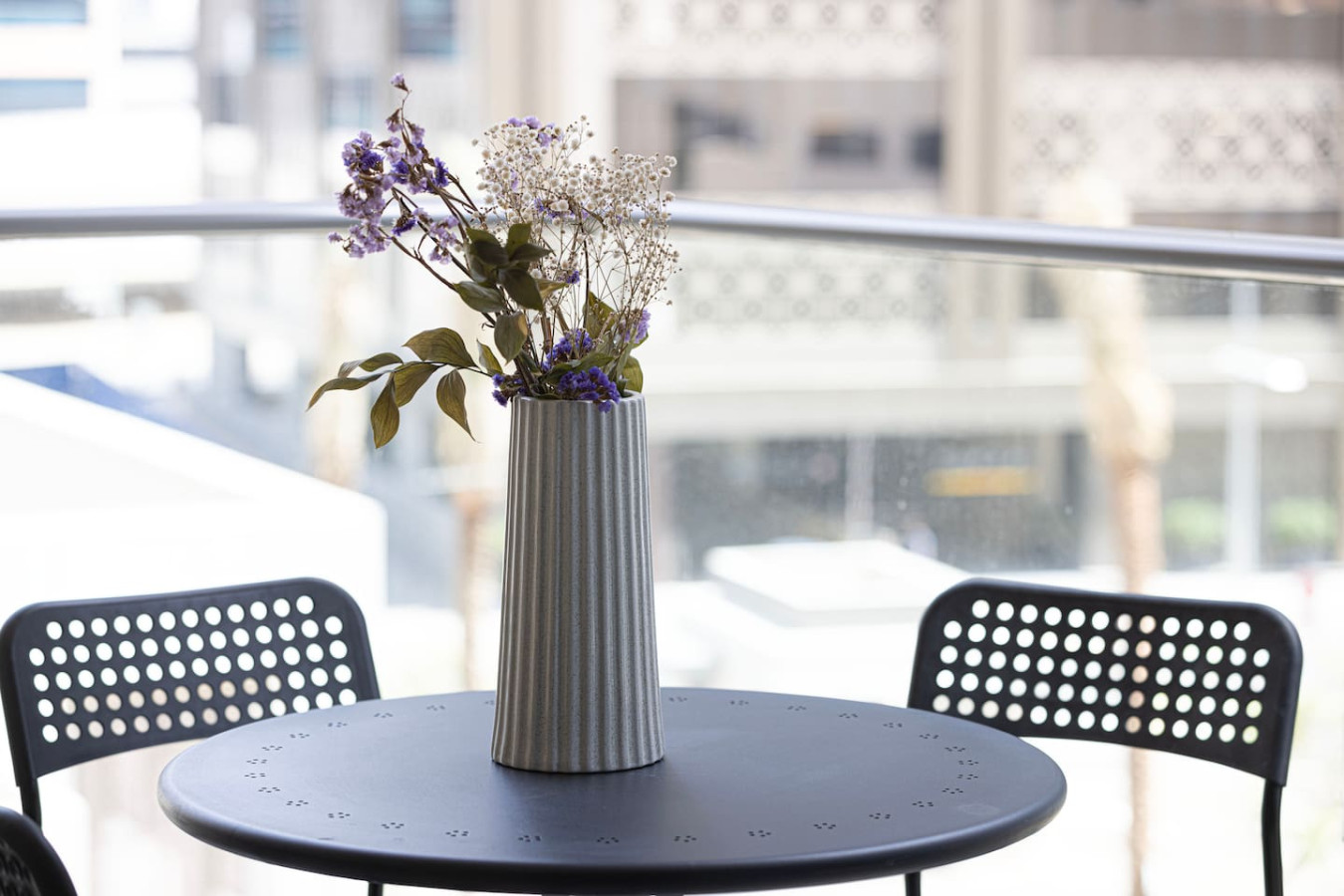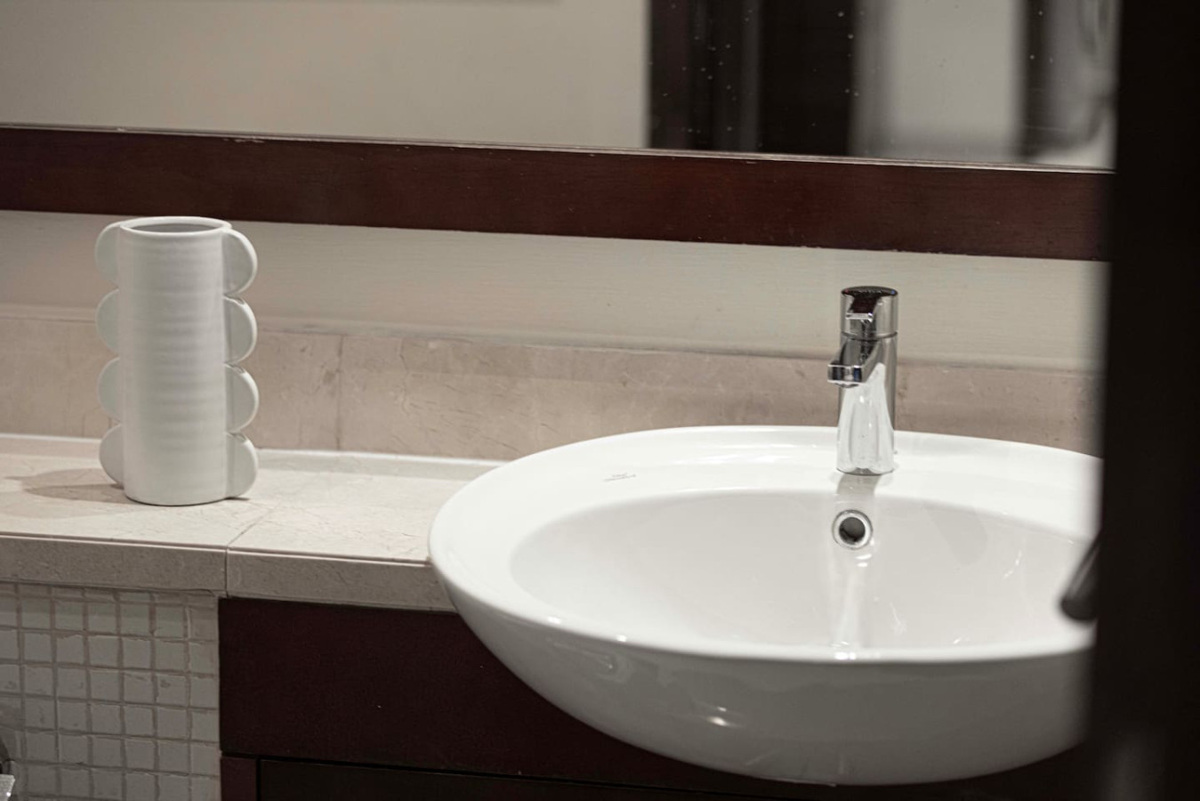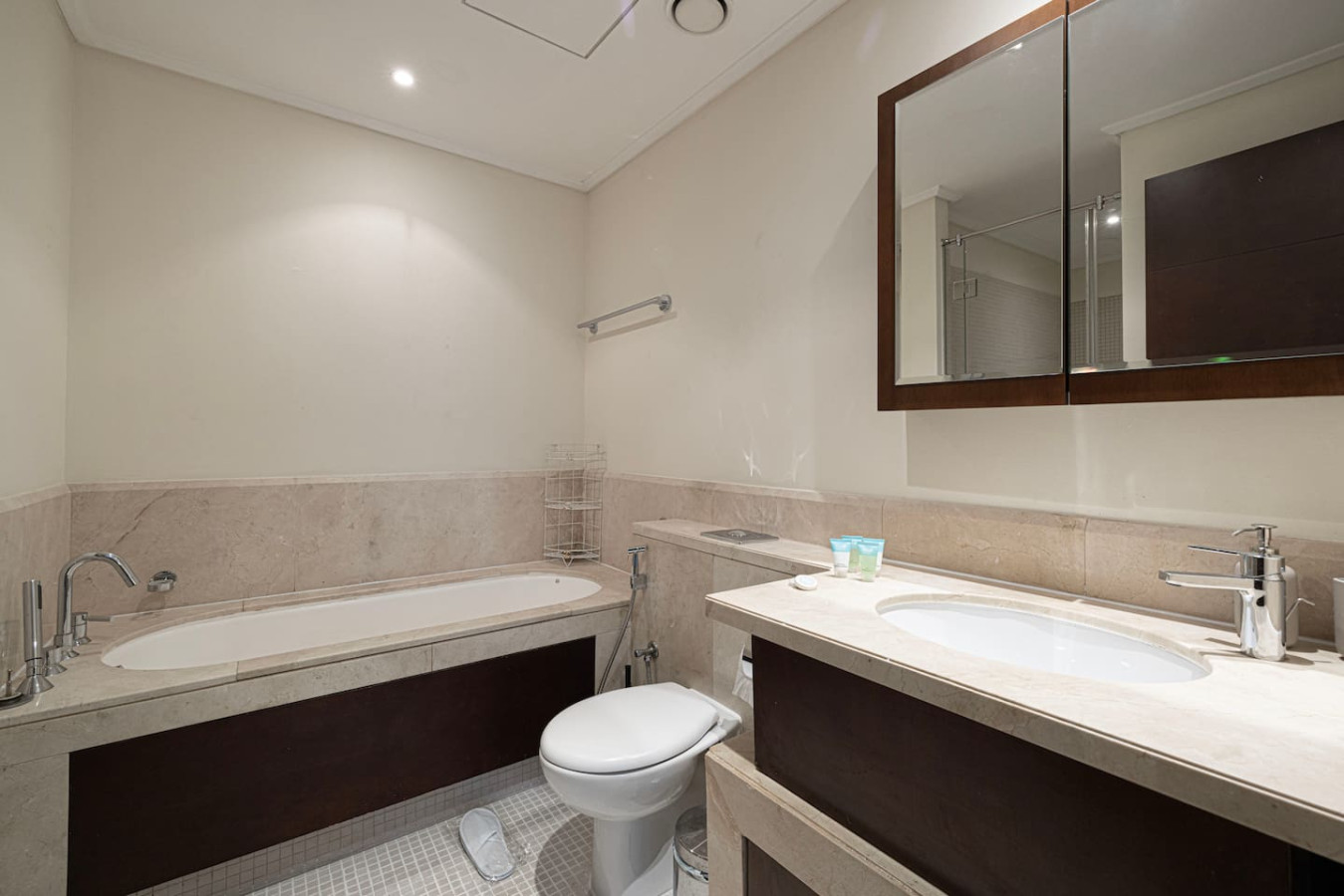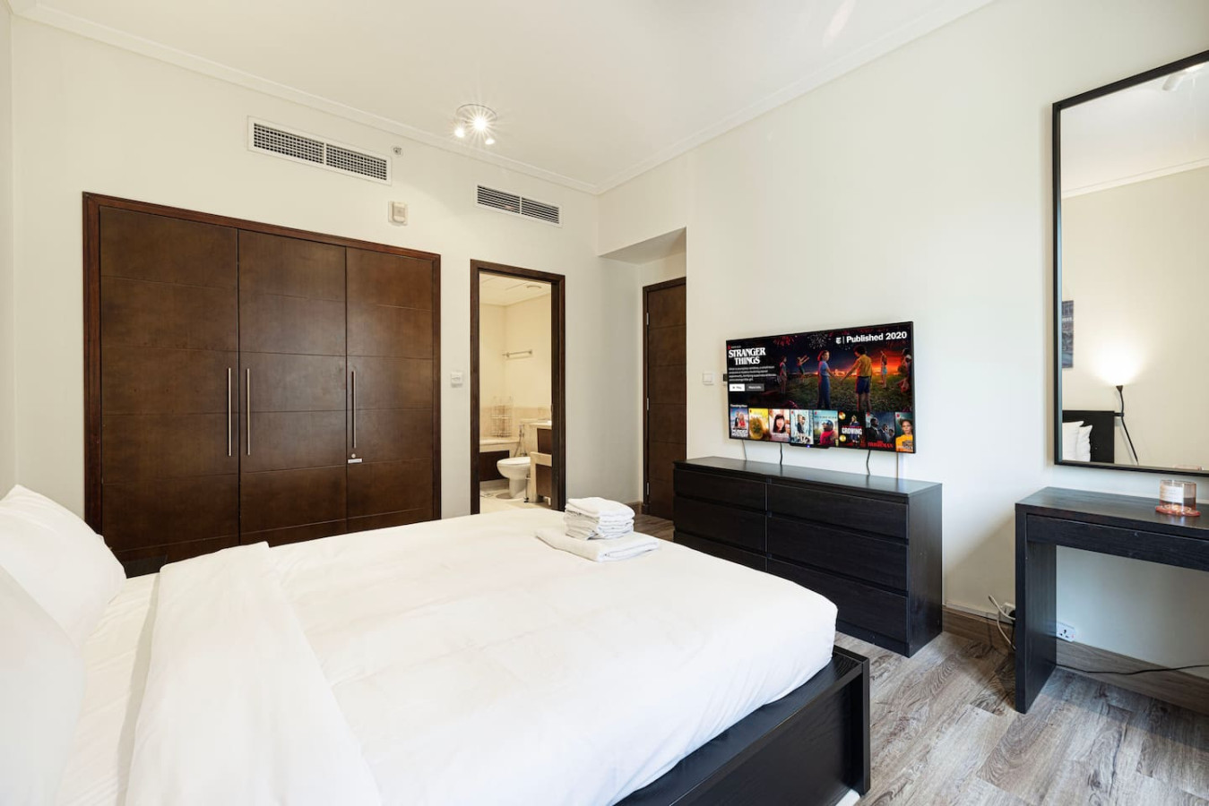 If you're looking for a modern newly furnished and comfortable apartment in Downtown Dubai, this is the one for you! Located centrally in the heart of Downtown & BLVD you will be in close to Dubai Mall, Burj Khalifa & Dubai Opera in the South Ridge tower 4. You will enjoy easy access to everything from this centrally located place. – 5 minutes walk from Dubai Mall – 5 minutes walk from Dubai Mall metro Station – supermarkets in the building Enjoy Dubai Our spacious 1-bedroom Dubai apartment is furbished with lovely furniture and decorations would undoubtedly make you feel at home This place is naturally w ell-lit, Sit back and lounge on the comfy couch while being entertained by the wall-mounted Cable TV. This area comes complete with a Soft rug, wooden center table, indoor plant & pendant light. Cook your meals in the fully functional kitchen equipped with a stove, microwave, toaster, kettle, coffee maker, fridge, cutleries, cookware, and dishwasher. Serve the meal and dine in together with your loved ones on this beautiful wooden dining table paired with 4 upholstered dining chairs. Munch your morning breakfast or evening snacks on the kitchen counter As you walk your way to the bedroom you will be welcomed with a King-sized bed fitted with fresh linens, soft pillows, and a cozy mattress to help you sleep better. The room comes complete with side lamps, wall art, vanity space & a sofa with a TV. The bathroom is packed with soft towels, shampoo, conditioner, shower gel, and body lotion. – One bedroom with king bed – Living Room with Sofa Bed and Sofa – Large living area/dining area – Large smart TV in the living room – Fully equipped kitchen – Brand NEW high-end GYM – Indoor children's play are Only a short walk away from Dubai Mall, the Fountain Show, The Boulevard and the Burj Khalifa herself – you are sure to enjoy your time in this exquisite apartment in the South Ridge 4 tower. We look forward to hosting your stay! Guests have full access to pool, gym and parking for free. we are always available to support face to face or over the phone . In the heart of Dubai Down Town across the street from Burj Khalifa – South Ridge 4 tower Metro or taxi or bicycle or you can also rent a scoter *Please note that there is a charge of AED 500 for each lost access card or set of keys **Please be advised that smoking inside the apartment is strictly prohibited with fine of 500 AED .