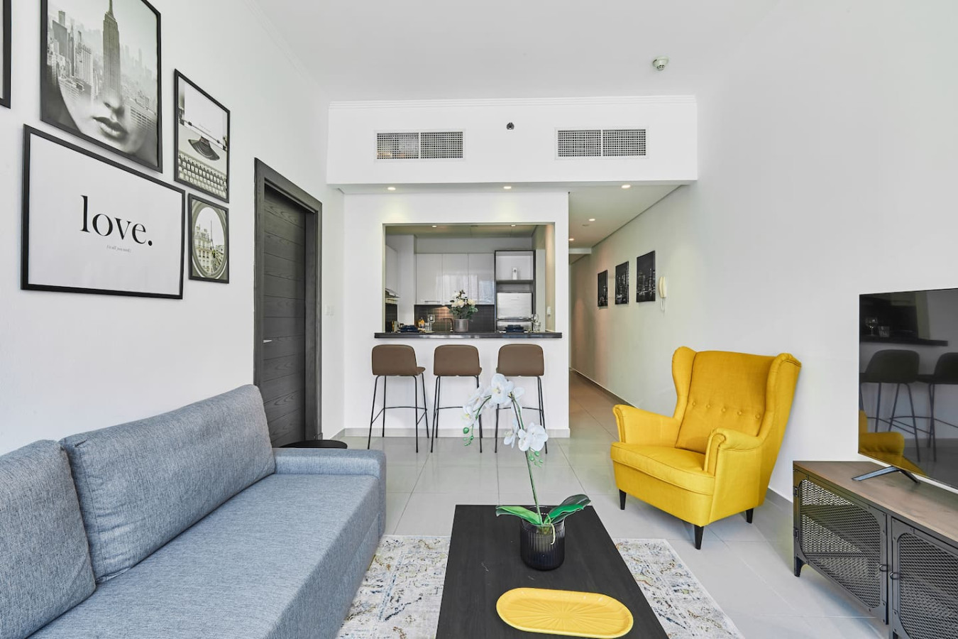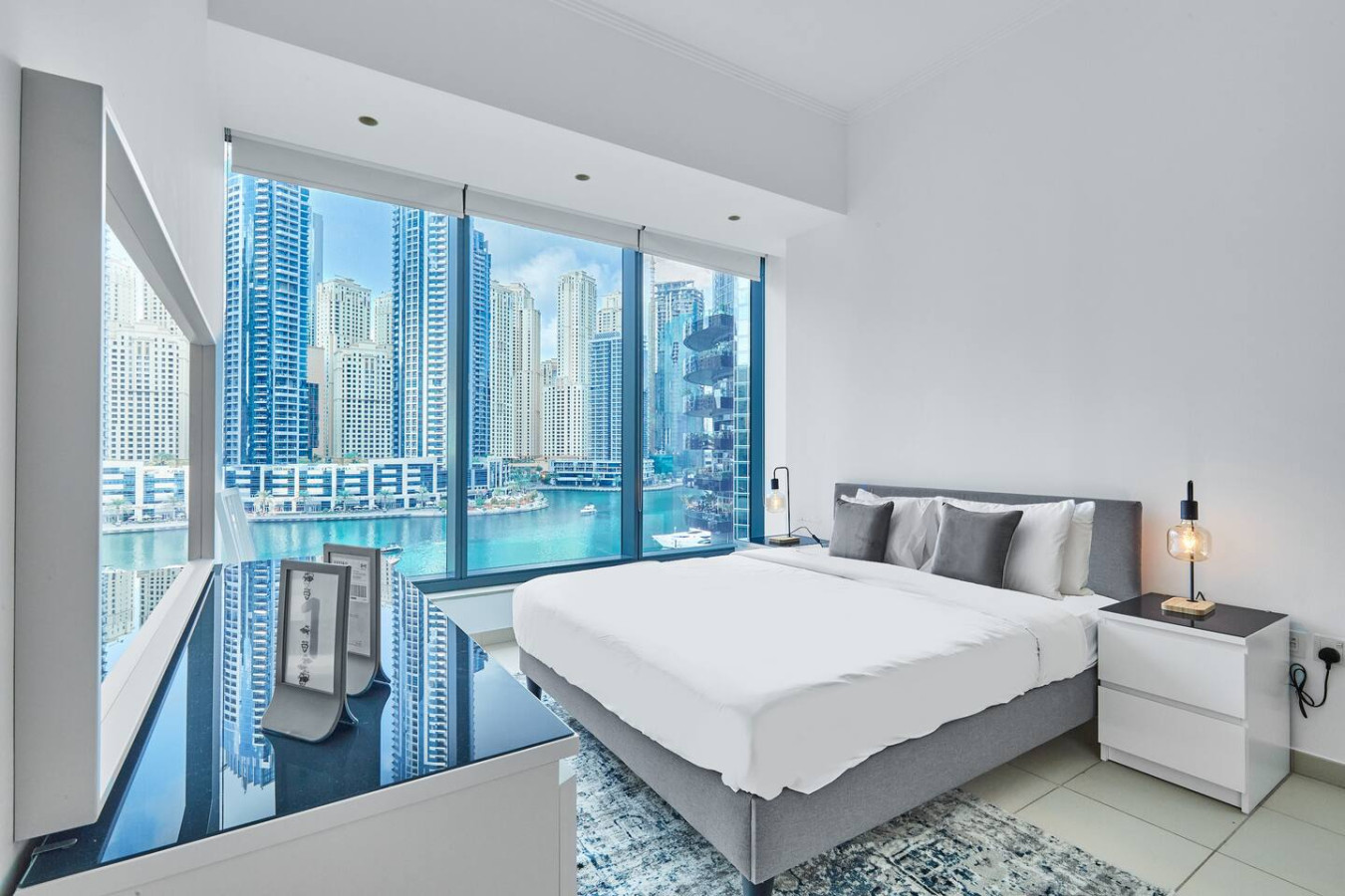 This luxurious one-bedroom apartment in Marina Silverene Tower is the perfect spot for a relaxing beach getaway, prime location, it has direct access to Dubai Marina mall, Marina walk, walking distance to the Famous beach (The Beach), cafes, and world-class restaurants, this is the ideal place for you if you love walking. It is fully furnished with everything you may need for a peaceful stay to enjoy views of Marina and JBR, with 1.5 bathrooms and all home appliances. Marina Silverne tower is a high-rise residential complex located in the community of Dubai Marina – Right along Dubai Marina, one will find an endless selection of hotels and Restaurants and walking distance to the Walk beach in famous JBR. The location is just perfect, Carrefour and pharmacy in the same building. -This one-bedroom apartment is spread over 75 sqm, has capacity for 4 people, and is located on the 6th floor with amazing view of Marina Property Amenities ✓ Living Area with Smart TV and Sofa Set ✓ Fully equipped Kitchen ✓ Dining Area ✓ En Suite Bedroom with Queen bed ✓ Fully furnished and equipped, ready to move-in Included in the Price ✓ All utilities are included (Electricity, water, High Speed Internet, TV with Cable Channels, AC/Chiller) ✓ Access to all building/community facilities for residents such as the pool and the gym. ✓ In house maintenance team – just a call away. Apartment features 1 room with King sized bed, side tables with lamp, a wardrobe, dressing table, As well en-suite bathroom with bathtub and shower, including toiletries and essentials, 1 big hall with Sofa bed and couch , table, flat screen smart tv with cable, dinning table . Extra floor mattress on demand Fully Equipped kitchen Beautiful views in day and night. sunny room with clean bed linen and quiet and clean apartment. the guest can access also the building amenities i.e. the gym , the outdoor pool, free of cost Free private parking space in the building. enjoy Dubai Gym, Pool and Parking we will be available all time to support the guest online and face to face Dubai Marina is number one touristic neighbourhood known for The Beach at JBR, Dubai Marina Mall is walking distance, JBR beach, Tram, many other supermarkets and restaurants many activities can be done such as yacht trips, jet-skiing and skydiving. The towers are surrounded by many dining facilities, and famous landmarks such as Ain Dubai, Palm Jumeirah. Tram, Taxi, walking and by scooter.