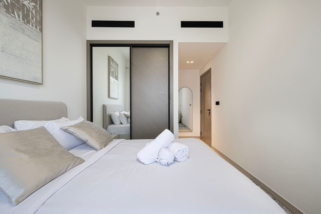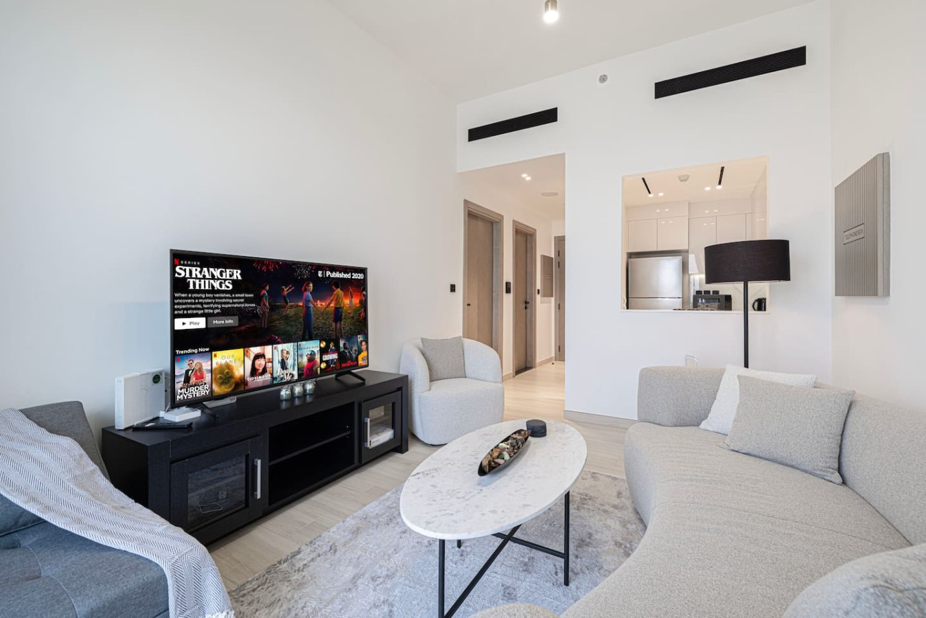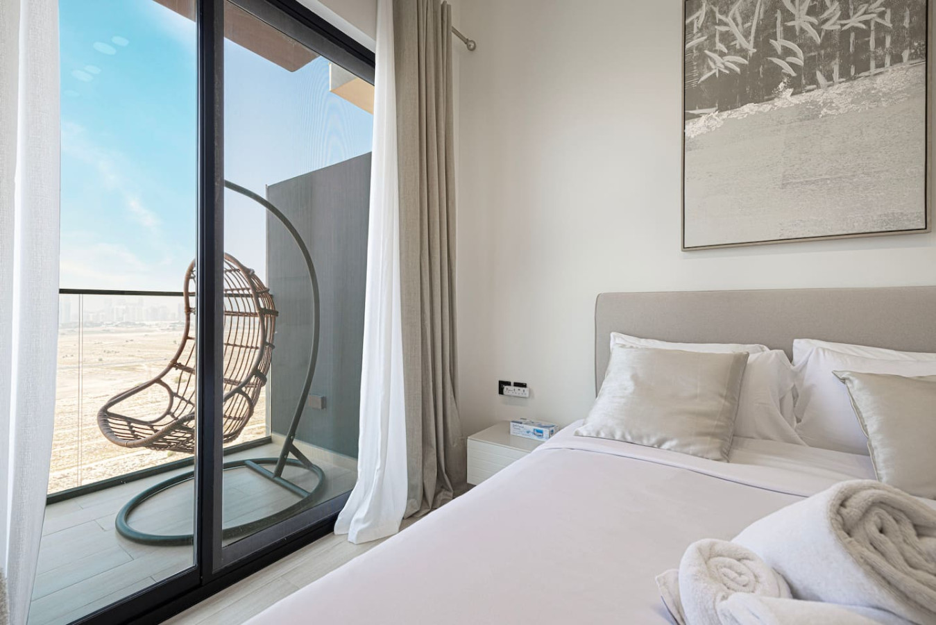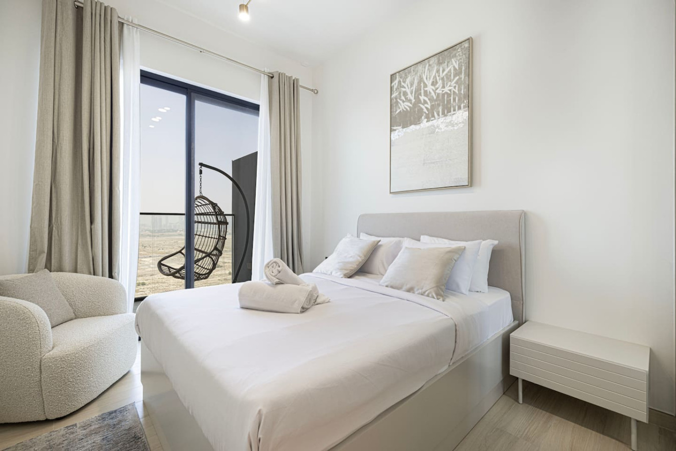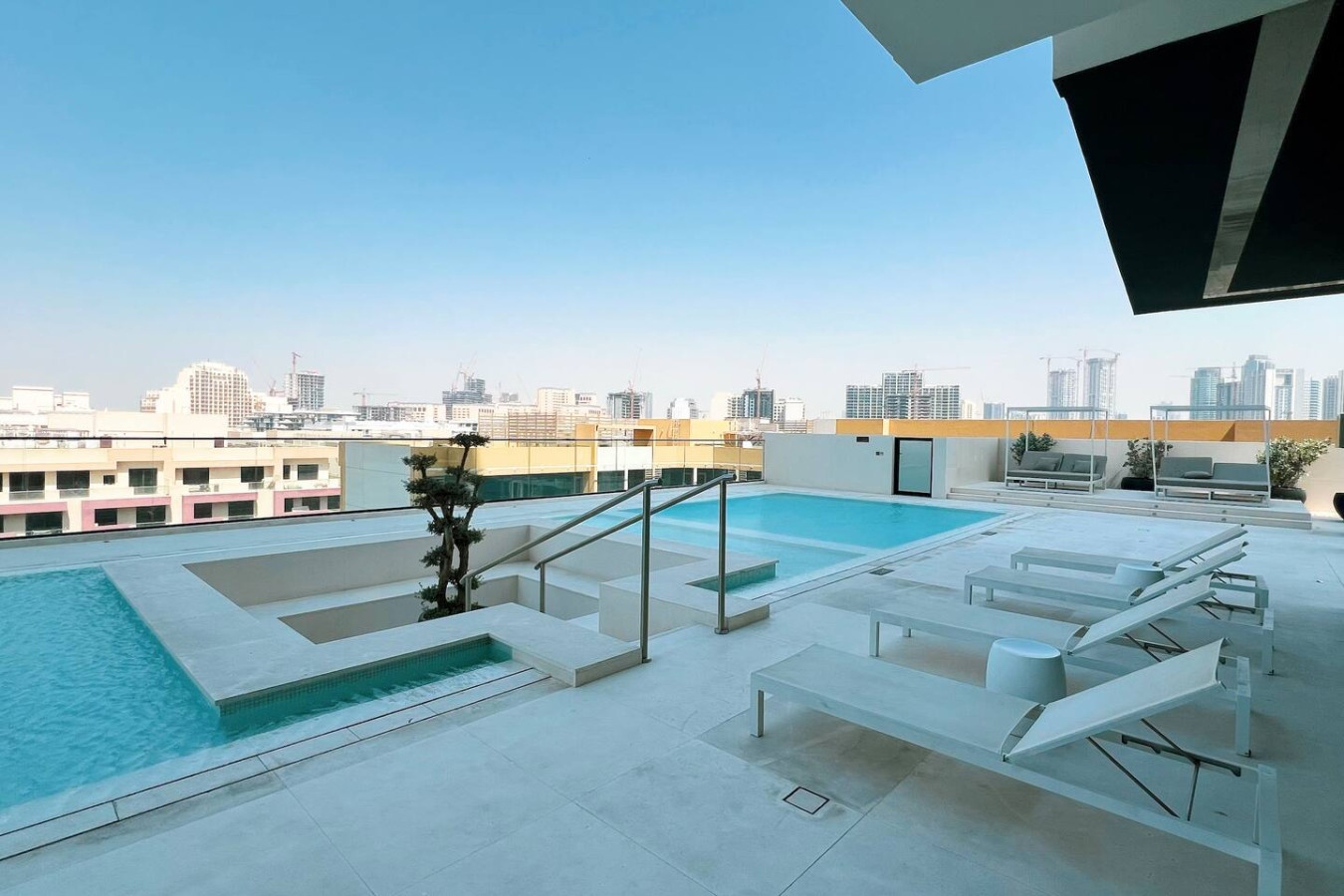 Brand new 1 bedroom apartment in Jumeirah Village Circle, at brand new tower Binghatti Heights . Apartment can sleep 4 adults or 2 adults and 2 kids. Bedroom has queen size bed and living room is fitted with sofa bed. The Apartment has 1 bathrooms and full kitchen. brand new tower has the best amenities including spacious co-working area, Gym, pool and private Parking all free for guests. You can always enjoy the Balcony at 21 floor with city skyline view. Welcome to Dubai 🙂 Neighborhood (by car): • International Airport (18 mins away) • Dubai Hills Mall (3 mins away) • Beach (15 min away) Binghatti Heights Building is a luxurious residential development designed to provide residents with everything . Built surrounded by the prime locality of Jumierah Village Circle with 30 floors. perfect for family with children and infant, crib or Baby travel bed can be provided upon request LIVING AREA Modern Decor and floor to ceiling windows overlooks the beautiful city of Dubai. KITCHENETTE Fully kitted upscale kitchen with everything you need to prepare a meal, including microwave and Kettle. MAIN BEDROOM Enjoy a peaceful night’s rest on a queen size bed, with luxury bedding and blackout curtains. BATHROOM Modern designed bathroom with shower and vanity. •Complimentary Wifi, cable TV and Netflix with Smart TV. •24/7 concierge and security service •Complimentary drinks, tea & coffee •Complimentary parking •Complimentary access to gym, pool and all other building facilities .The wardrobes are built in .Crib or baby travel bed for kids . FREE high speed WIFI in the apartment and co-working areas FACILITIES Swimming Pool Gym Free Parking child friendly infant friendly wish you enjoy your stay and looking forward to welcome you in Dubai.. Gym , Pool, Parking Guests can contact us at anytime through private message, call, Whatsup or personally JVC is one of the new areas in Dubai with easy access to almost everywhere in Dubai. Taxi or Walking *Please note that there is a charge of AED 350 for each lost access card or set of keys **Please be advised that smoking inside the apartment is strictly prohibited. Failure to comply will result to fine of 500 AED