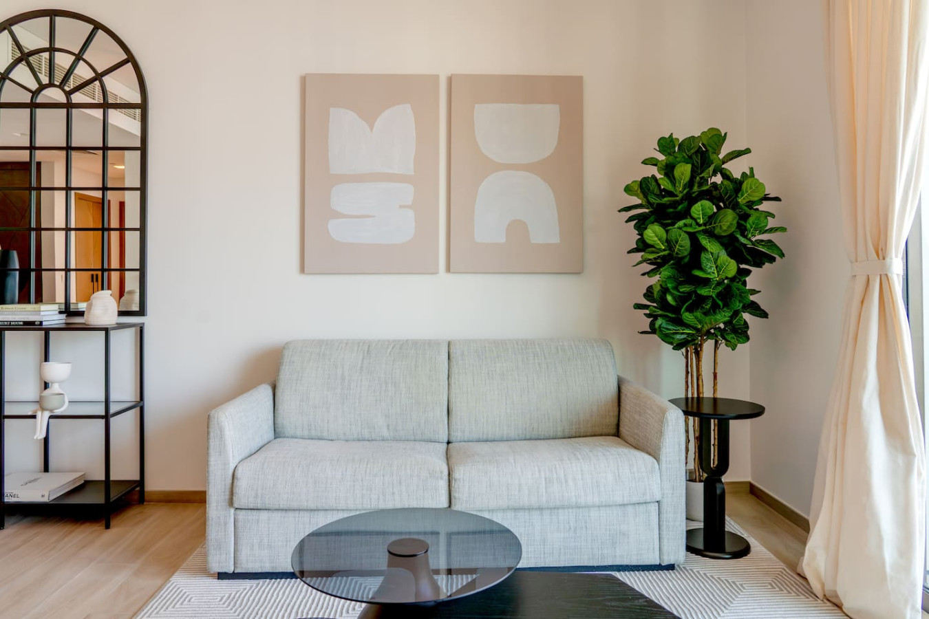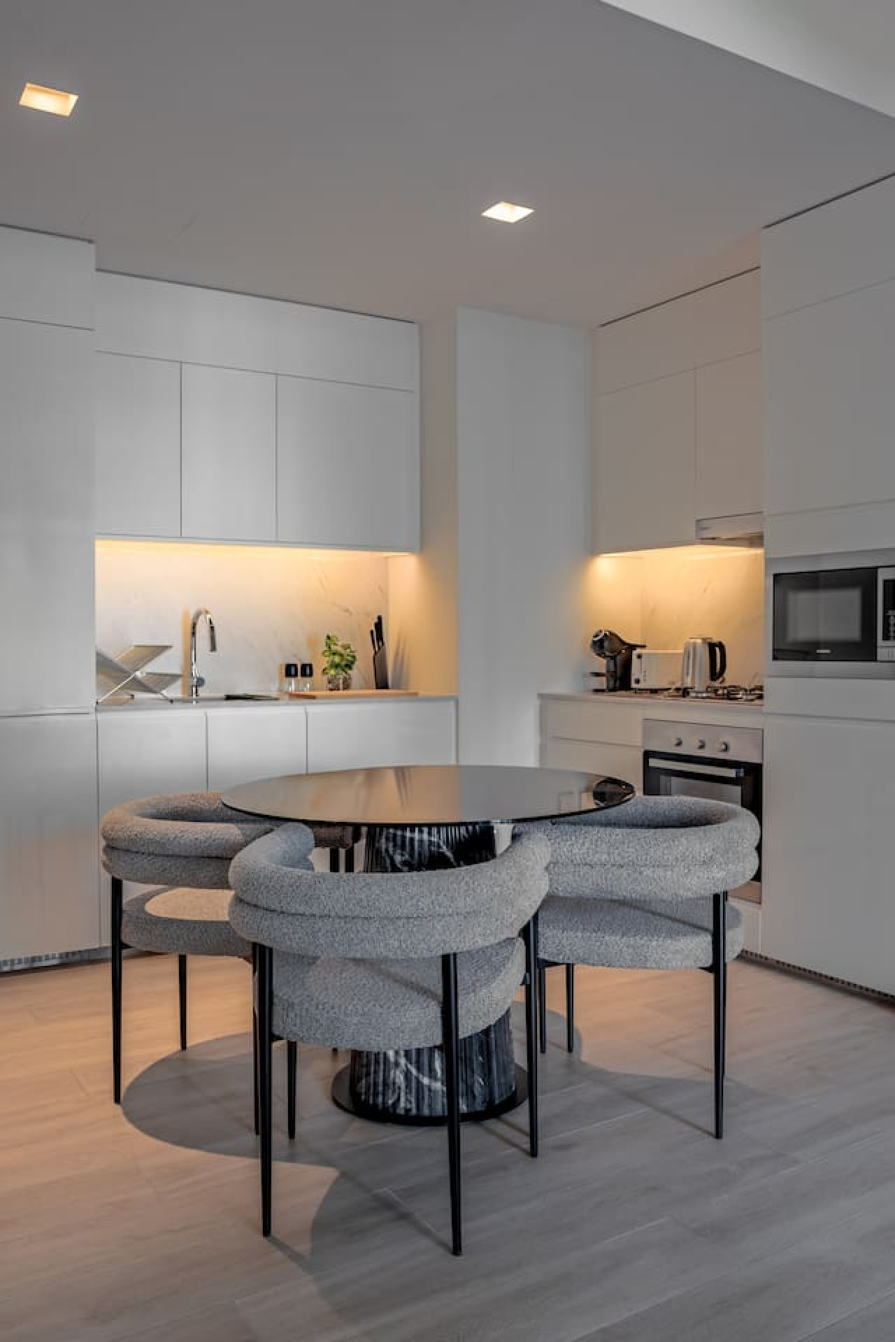 Luxury 5 stars experience in Palace residences, inspired by Palace hotel, you will Love the facilities of the building in community of Dubai Creek Harbour, beautiful views of the city and surrounding community. Within this prime location, guests have access to a number of amazing facilities like walkways, parks and are close to nearby retail store, restaurants, cafes and more. The building is brand new developed by Emaar. Welcome To Dubai 🙂 This Lovely one bedroom Apartment offer: – Fully equipped open plan kitchen with dishwasher and coffee machine – sofa Bed – Smart TV – Modern dining table to four people – Furnished balcony – Separate laundry cupboard Sleeping arrangements: Master Bedroom: – Queen-sized bed – En-suite bathroom – Bathroom essentials Living Room: – Sofa Bed – Extra Bed sheet and blankets can be provided Key features: – High-speed Wi-Fi – Hotel amenities i – private parking Building features: – Swimming pool – Gym – Kids Play Area enjoy 20% discount on food and beverages in Palace hotel Guests have access to the hotel pool The residences building has its own private gym we are always available to support face to face or over the phone . Palace Residence at Creek Beach will be situated near the heart of the dazzling Creek Island, Downtown Dubai will not take longer than 10 minutes, while the Dubai International Airport will be a mere 15-minute drive away Distances by car: Dubai International Airport – 9.1 km Dubai Frame – 12.9 km Burj Khalifa – 13.3 km Dubai Mall – 14 km Museum of the Future – 16.4 km Kite Beach (Public Beach) – 19.8 km Jumeirah Beach Residences (Public Beach) – 36.6 km Bluewaters Island (Ain Dubai) – 39.3 km – Taxi – You can use the Careem App to easily book taxi – Walk *Please note that there is a charge of AED 500 for each lost access card or set of keys **Please be advised that smoking inside the apartment is strictly prohibited. *** Please Provide your passport copies before the arrival