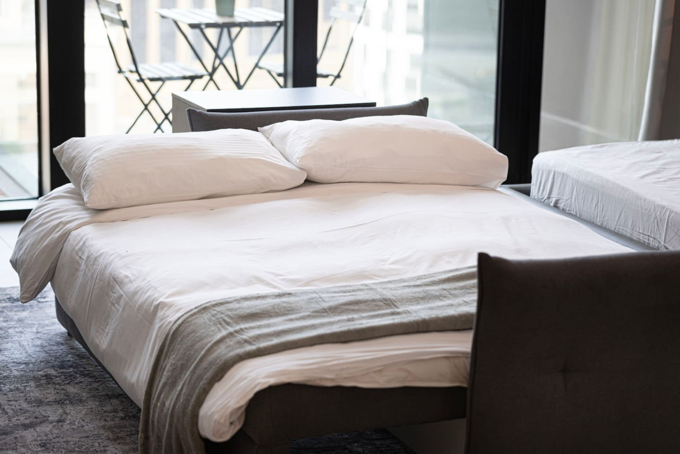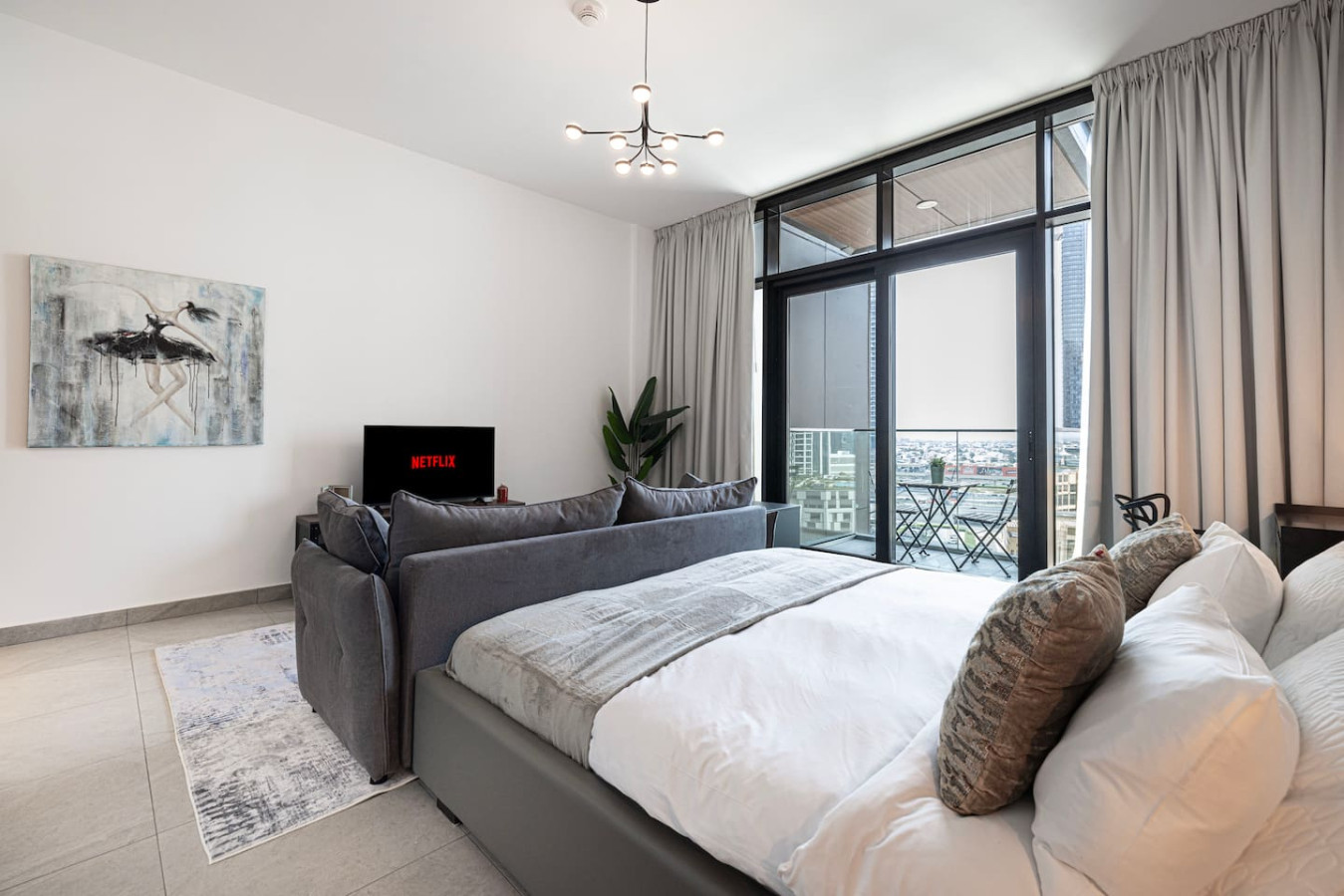 Welcome to our Luxury Studio with sofa bed in luxuries DT1 building (Ellington) in the heart of Downtown Dubai, Perfect for up to 3 guests, ideally located in Burj Khalifa Blvd – Downtown Dubai, 5 minutes away from Dubai Mall, and the iconic Burj Khalifa. The apartment features a cozy bedroom, a fully equipped kitchen, Smart TV, high-speed Wi-Fi, and a stylish bathroom. Perfect for family with children and infant, crib can be provided upon request Welcome to Dubai… enjoy: 🛜Complimentary Wifi ☕️Complimentary drinks, tea & coffee 👶Baby crib on request for free 🚘Complimentary parking 🏋️Complimentary access to gym, pool and all other building facilities 🏪Nearest grocery stores and restaurants 2 min walk ⏰Check-in: 3pm onwards ⌛️Check-out: By 12 PM LIVING ROOM Step into the spacious living area, ✔ Comfortable Sofa with Pillows ✔ Smart TV ✔ Stylish Coffee Table KITCHEN & DINING It is fully equipped with stainless-steel cooking appliances that make it suitable for preparing any meal ✔Microwave ✔ Stove ✔ Oven ✔ Toaster ✔ Refrigerator/Freezer ✔ Coffee Maker ✔ Hot Water Kettle ✔ Sink – Hot & Cold Water ✔ Trays ✔ Glasses ✔ Silverware ✔ Pots & Pans ✔All cooking ware ✔ Dining Table ✔ Access to the balcony 🛏 SLEEPING ARRANGEMENTS – 1 BEDROOM 1- Master Bedroom: King Size Bed 2- Living room: Sofa Bed 🛁 BATHROOM The bathroom is stocked with fresh towels and essential toiletries, so you don't have to worry about bringing your own. * Walk-In Shower * Bathroom * Mirror * Toilet * Hair Dryer * Essential Toiletries wish you enjoy your stay and looking forward to welcoming you in Dubai. Guests have full free access to gym, pool and parking for free Guests can contact us at anytime through private message, call, personally In the heart of Dubai Downtown across the street from Dubai Mall and in Burj Khalifa Boulevard Metro or taxi or bicycle or you can also rent a scoter. *Please be advised that smoking inside the apartment is strictly prohibited. **After booking and receiving the confirmation message, please provide your passport photos ***Cleaning Fees: The cleaning fees mentioned in the price breakdown cover only the check-out cleaning. For any additional in-stay cleaning, please reach out to us for prices and bookings.