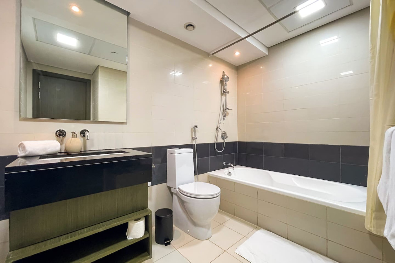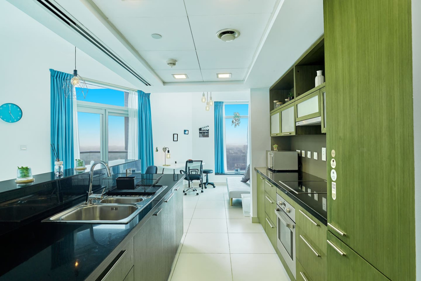 the building reception is currently under renovation till 15th October 2024 so you can enter the building from alternative entrance modern and comfortable 1 BR apartment in Downtown Duba Located in the heart of Downtown & BLVD you will be in close to Dubai Mall, Burj Khalifa & Dubai Opera in the lofts East tower. Enjoy easy access to everything from this place : – 3 minutes walk from Dubai Mall and Burj Khalifa – 2 minutes walk from Dubai Opera – supermarkets in the building Welcome Please note that the building reception is currently under renovation for one month till 15th October 2024 so you can enter the building from alternative entrance Our spacious 1-bedroom Dubai apartment is furbished with lovely furniture and decorations would undoubtedly make you feel at home Cook your meals in the fully functional kitchen equipped with a stove, microwave, toaster, kettle, fridge, cutleries, cookware, Serve the meal and dine in together with your loved ones on this beautiful wooden dining table paired with 2 upholstered dining chairs. Munch your morning breakfast or evening snacks on the kitchen counter As you walk your way to the bedroom you will be welcomed with a King-sized bed fitted with fresh linens, soft pillows, and a cozy mattress to help you sleep better. The room comes complete with side lamps, wall art, vanity space & a sofa with a TV. The bathroom is packed with soft towels, shampoo, conditioner, shower gel, and body lotion. – One bedroom with king bed – Living Room with Sofa Bed and Sofa – Large living area/dining area – Large smart TV in the living room – Fully equipped kitchen – Brand NEW high-end GYM – Indoor children's play are Only a short walk away from Dubai Mall, the Fountain Show, The Boulevard and the Burj Khalifa herself – you are sure to enjoy your time in this exquisite apartment in the Lofts East We look forward to hosting your stay! Guests have full access to pool, gym and parking for free. we are always available to support face to face or over the phone . In the heart of Dubai Down Town across the street from Burj Khalifa Metro or taxi or bicycle or you can also rent a scoter *Please note that there is a charge of AED 350 for each lost access card or set of keys **Please be advised that smoking inside the apartment is strictly prohibited with fine of 500 AED .