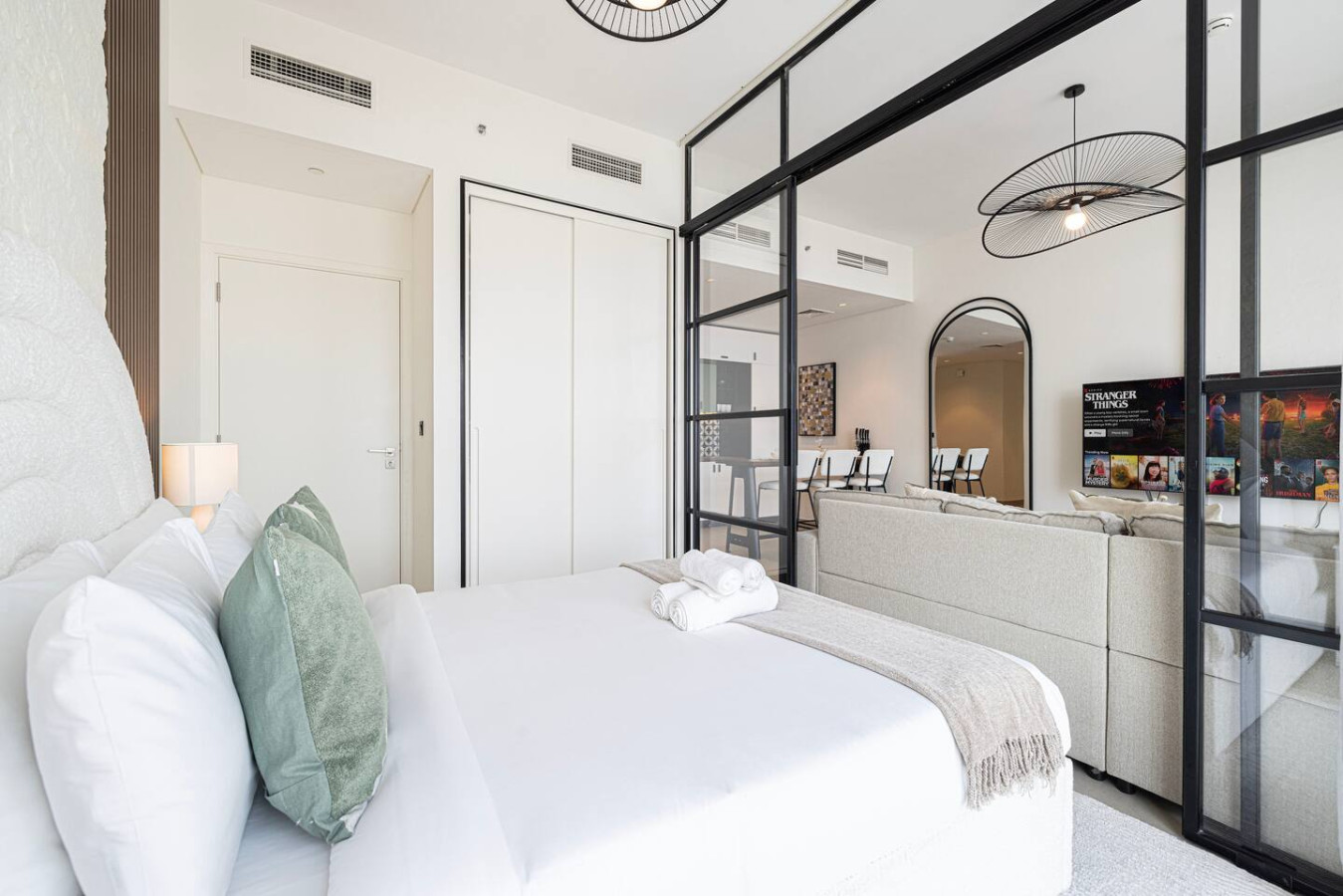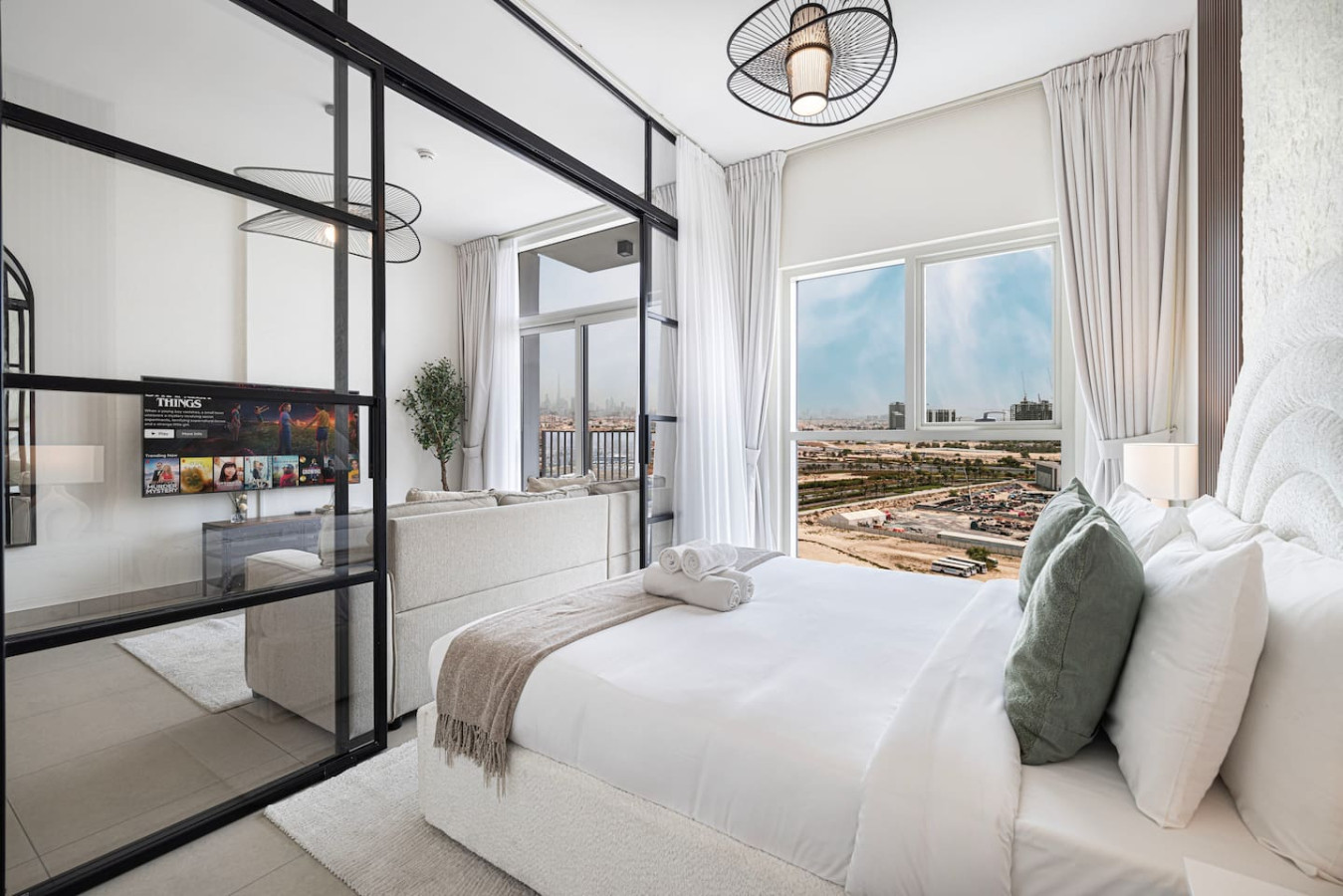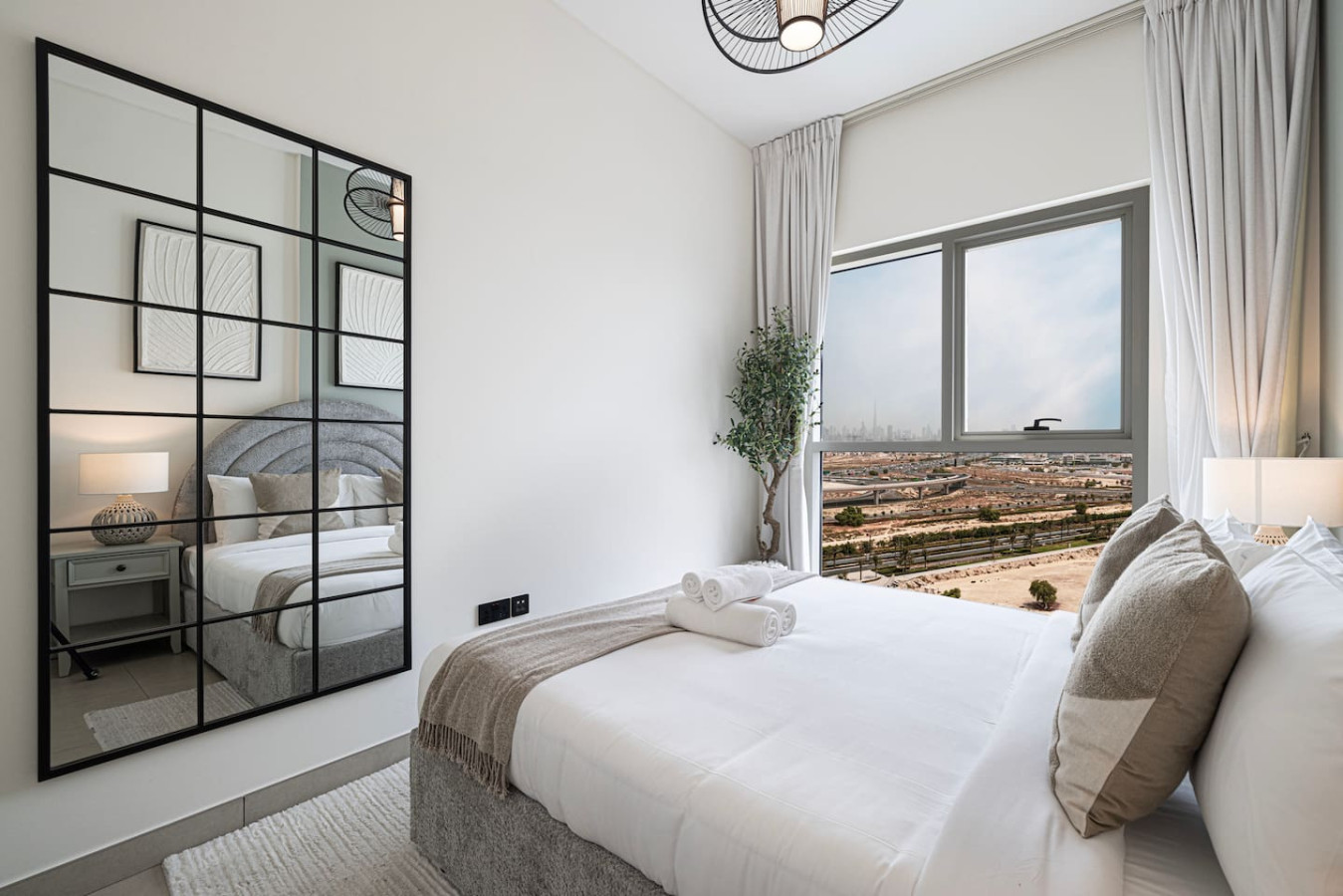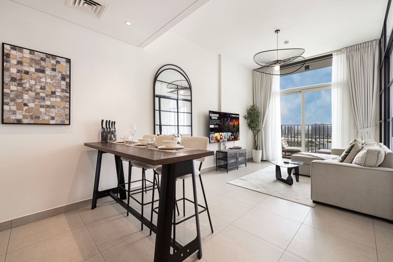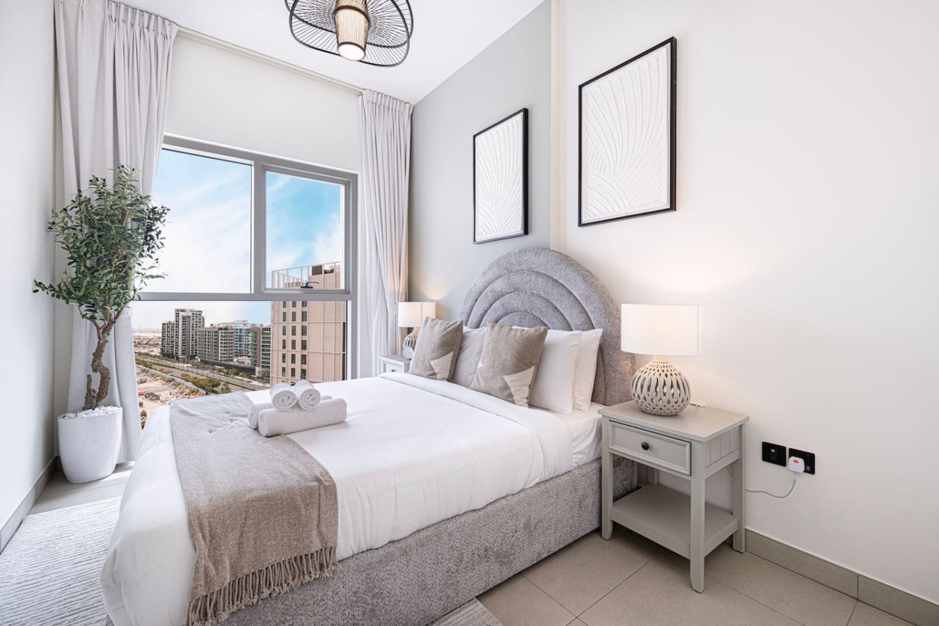 luxurious 2BR apartment in Socio with an amazing open view over the city suited in the brand-new community of Dubai Hills by Emaar. Socio is brand new tower have the best amenities and life style including spacious co-working area, Gym , pool, Cinema, Billiard and Much more all free for guests. The central location is just a few minutes drive from Downtown Dubai or the Marina. You can always walk out of the door and enjoy the park and Dubai Hills Mall. welcome to Dubai 🙂 Neighbourhood (by car): • International Airport (18 mins away) • Dubai Hills Mall (3 mins away) • Beach (15 min away) Socio Tower is a luxurious residential development designed to provide residents with everything . Built surrounded by the prime locality of Dubai Hills Estate, where luxury and serene nature interlace, an extroverted 18-hole championship golf course, and a pulsating promenade of chic retail boutiques, fine dining concepts, and commercial hubs. perfect for family with children and infant, crib or Baby travel bed can be provided upon request Socio displays a multitude of spaces and communal areas, relaxation corners and business facilities. Close by, guests can explore shopping at the trendy Dubai Hills Mall Boulevard with over 650 shops and many dining options, within walking distance. The community is easily accessible as it is located next to Al Barsha South and along the Al Khail Road (E44) highway. LIVING AREA Modern Decor and floor to ceiling windows overlooks the beautiful city of Dubai. with very nice balcony specially at the sun set,sofa bed is also available KITCHENETTE Fully kitted upscale kitchen with everything you need to prepare a meal, including a coffee machine, microwave and Kettle. MAIN BEDROOM Enjoy a peaceful night’s rest on a queen size bed, with luxury bedding and blackout curtains. SECOND BEDROOM Enjoy a peaceful night’s rest on a queen size bed, with luxury bedding and blackout curtains. BATHROOM Modern designed bathroom with shower and vanity. •Complimentary Wifi, cable TV with Smart TV. •24/7 concierge and security service •Complimentary drinks, tea & coffee •Complimentary parking •Complimentary access to gym, pool and all other building facilities .The wardrobes are built in .Crib or baby travel bed for kids . FREE high speed WIFI in the apartment and co-working areas FACILITIES Swimming Pool common working area Gym Pool Table Free Parking Golf (to be arranged by guest at additional cost) child friendly infant friendly wish you enjoy your stay and looking forward to welcome you in Dubai.. Guests can access gym, pool, Tv room, gaming room, shared work space, sitting area, cafe and all the facilities in the building for free Guests can contact us at anytime through private message, call, Whatsup or personally Socio Tower 2 Dubai hills is the green heart of Dubai developed by Emaar, it is in the middle of Dubai so few minutes driving to Marina or Downtown area, quit area and next to Dubai Hills Mall Taxis are available all time or by walking *Please note that there is a charge of AED 350 for each lost access card or set of keys **Please be advised that smoking inside the apartment is strictly prohibited. Failure to comply will result to fine of 500 AED
