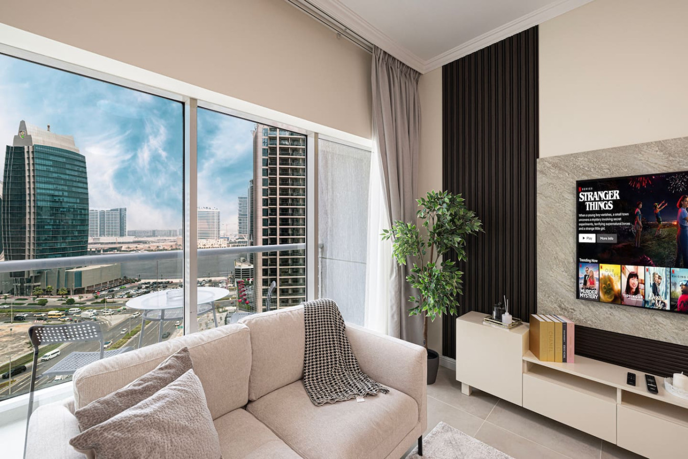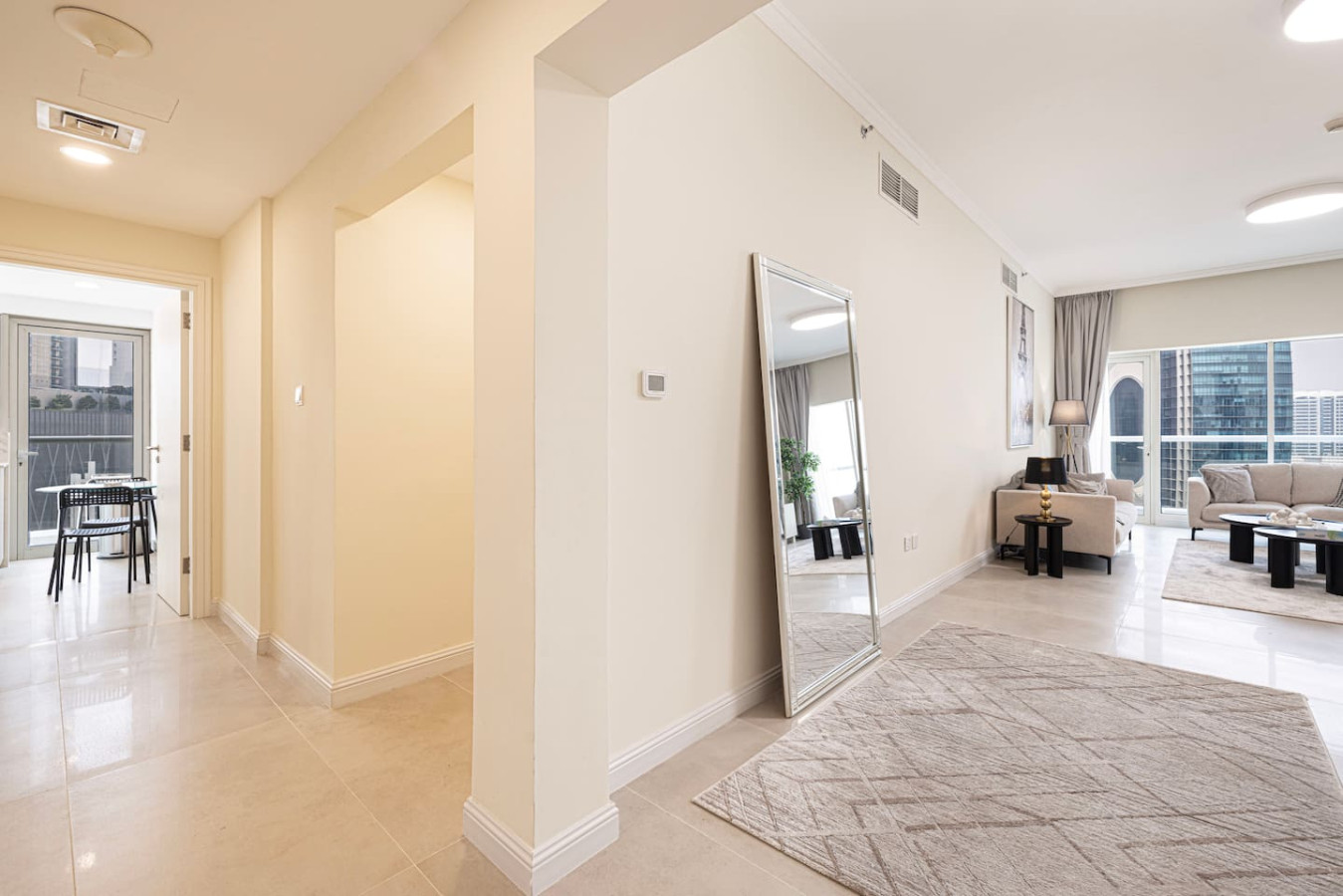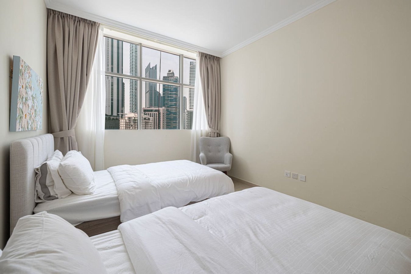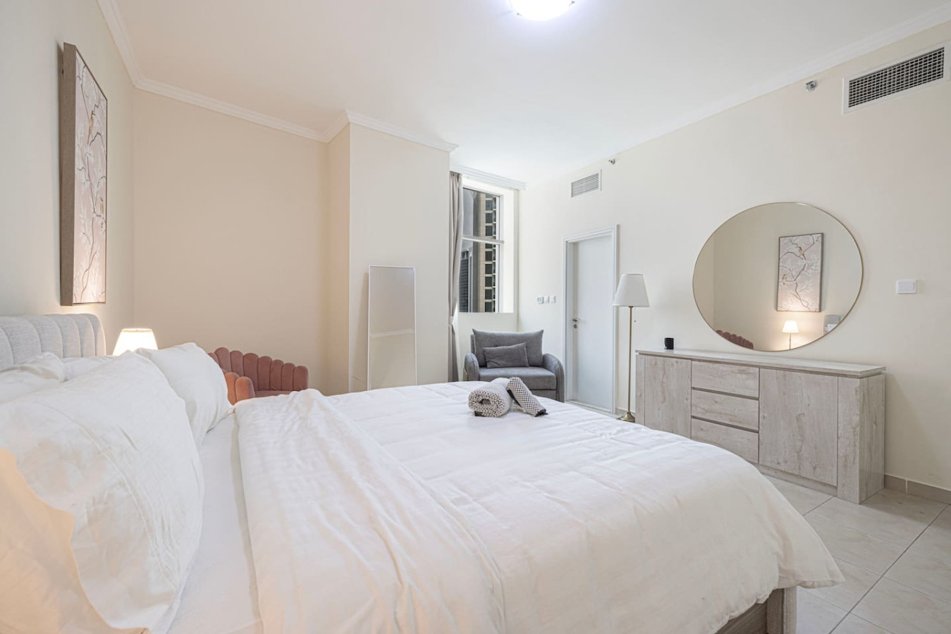 In this fabulous 2BR apartment, Experience the down town living in Burj Al Nujoom Downtown . With a prime location just steps away from the Burj Khalifa, Dubai Mall, top-rated restaurants, trendy cafes, and more, your convenience is assured. The Apartment is fully renovated and newly furnished. Burj Al Nujoom, one of Dubai's premier developments, Enjoy the convenience of amenities such as a spacious swimming pool and a well-equipped gym you will be close to everything in the Dubai center Designed to harmoniously blend luxury and cultural flair, 2 minutes walk to Burj Khalifa; Dubai mall and The Dubai Fountain. Experience the vibrant Downtown lifestyle with Burj Alnujoom as your backdrop, offering a captivating and immersive experience like no other. Key features of the property include: – Location: Burj Alnujoom, Downtown, Dubai – Spacious 2-bedroom apartment accommodating up to 6 guests – Situated on the 10th floor – Relax on the large balcony offering panoramic views of Dubai Canal – Access to amenities such as a pool, gym – Conveniently located just a 2-minute walk from grocery stores and restaurants – Burj Khalifa and Dubai Mall are right across the street – Complimentary private parking space available – Easy access to public transportation with Dubai Metro – Stay connected with free Wi-Fi throughout your stay – Check-in is available from 3pm onwards – Check-out time is by 12PM – Take advantage of a 10% discount for stays of 1 month or longer – Cots are available upon request for an additional fee Please let us know if you have any further questions or if there's anything else we can assist you with. Additional features of the property include: – smart TV in the living room with cable channels and streaming services (login required) – A fully equipped kitchen for all your culinary needs – A guest toilet for added convenience – A furnished balcony with stunning views of the Downtown cityscape – The master bedroom with a king bed and built-in wardrobes – The second bedroom with a king bed and built-in wardrobes – A guest bathroom equipped with all the necessary amenities In addition to the mentioned features, we are pleased to provide the following amenities for your convenience: – A welcome package including tea, coffee, and water to kick-start your stay. – A set of body and hand towels, ensuring a comfortable stay for up to 6 guests. – High-quality bedding and linen, guaranteeing a restful sleep on the provided beds and sofa bed. – A set of body soap, lotion, shampoo, and conditioner, so you can freshen up in the bathroom with ease. – Cleaning equipment, allowing you to maintain the cleanliness of the apartment during your stay. —Location— Our prime location in Downtown Dubai offers easy access to various attractions and amenities: – Tower/Address: Burj AlNujoom – Business Bay Dubai – Dubai Mall and Burj Khalifa are conveniently located across the street. – Souk Al Bahar is a short 5-minute walk away. – The closest beach can be reached within a 15-minute taxi ride. – Shops are just a 5-minute walk from the property. – Restaurants are available right across the street. – Dubai Metro is a 15-minute walk or a 5-minute taxi ride. – Dubai Marina can be reached in approximately 25 minutes by taxi or metro. – DIFC (Dubai International Financial Centre) is a 10-minute taxi ride. – The Mall of the Emirates can be reached in about 20 minutes by taxi or 10 minutes by metro. – The airport is approximately a 20-25 minute taxi ride or a 25-30 minute metro journey. – Our team is always just a phone call away, ready to assist you whenever needed. With our strategic location, you'll have easy access to key destinations in Dubai, ensuring a convenient and enjoyable stay. Should you require any further information or have specific inquiries, please feel free to contact us. *Please note that there is a charge of AED 500 for each lost access card or set of keys **Please be advised that smoking inside the apartment is strictly prohibited.