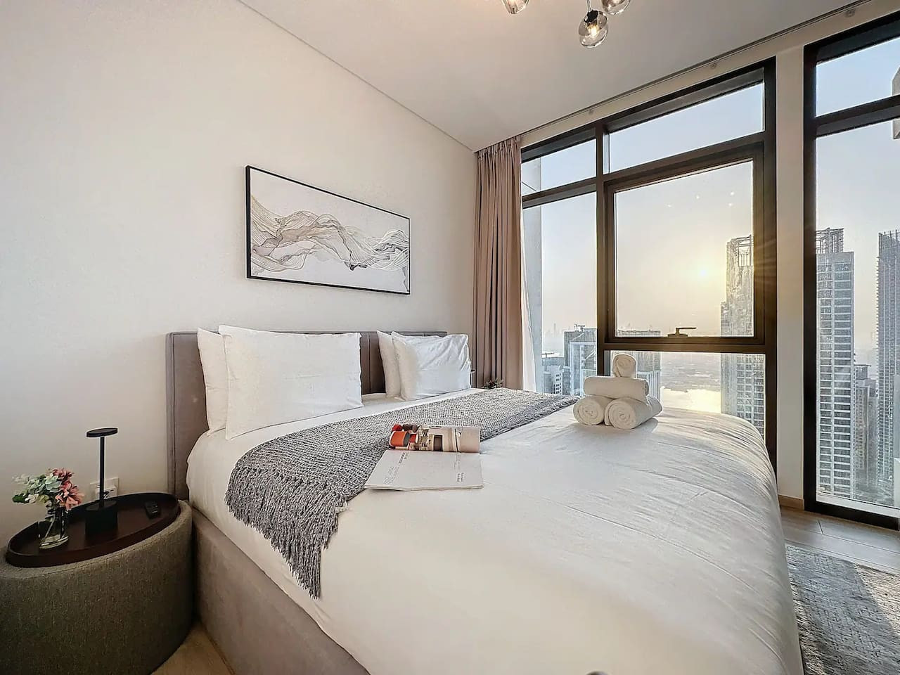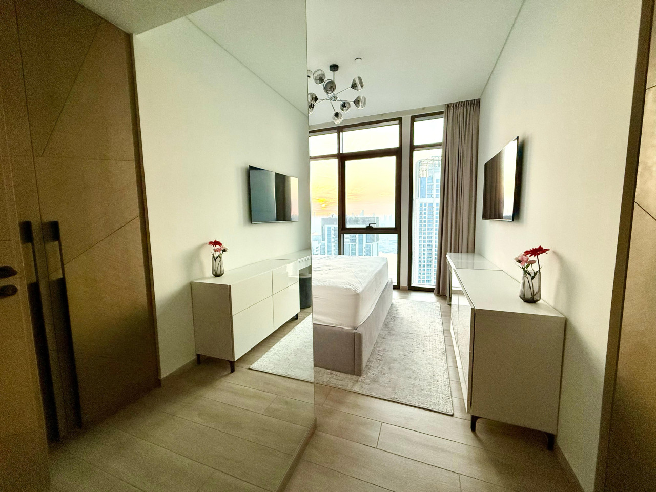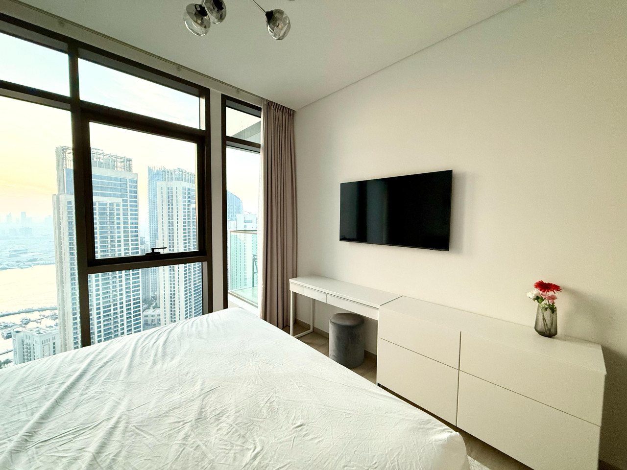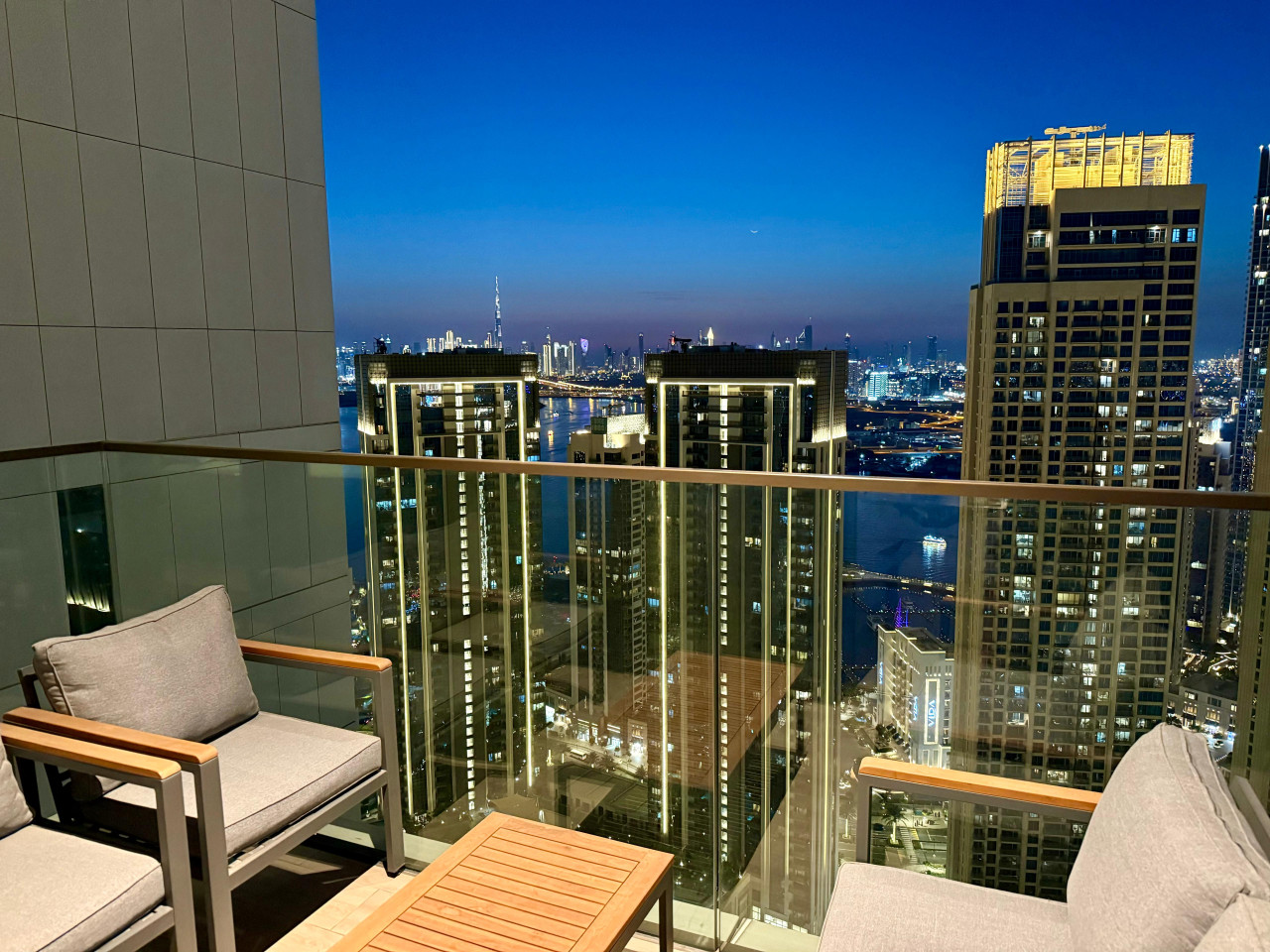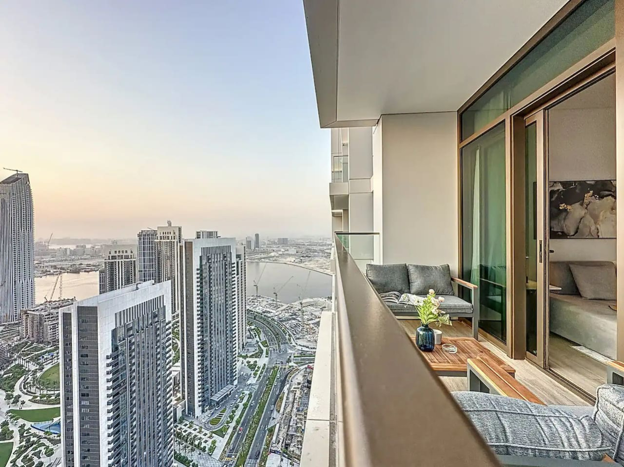 Luxury 5 stars experience in Palace Residences, inspired by Palace Hotel. You will love the facilities of the building in the community of Dubai Creek Harbour and the beautiful views at 42nd floor of the city and surrounding community. Within this prime location, guests have access to a number of amazing facilities like walkways, parks and are close to nearby retail store, restaurants, cafes and more. The building is a 5* branded residence by Emaar. Step into a realm of modern elegance as you enter this beautifully designed, open-plan one-bedroom apartment. The living area exudes sophistication, with tasteful furnishings that include a cozy sofa bed, perfect for accommodating extra guests and a 75” flat-screen TV. Revealing breathtaking views of the Creek, Burj Khalifa, and the iconic Dubai skyline. The fully equipped kitchen is a culinary haven, outfitted with state-of-the-art appliances and all the necessary cookware, utensils, and tableware. Whether you're whipping up a quick breakfast or crafting a gourmet dinner, you'll find everything you need at your fingertips. The adjacent dining table, which comfortably seats four, is the perfect spot to enjoy your meals and savor your culinary creations. Retreat to the tranquil bedroom, featuring a plush king-size bed adorned with high-quality linens, ensuring a restful night's sleep. The ample closet space allows you to unpack and settle in, making you feel right at home from the moment you arrive. This lovely one-bedroom apartment offers: – Fully equipped open plan kitchen with dishwasher and coffee machine – 75" and 50" Samsung smart TVs & Sonos sound system – Modern dining table to 4 people – Furnished balcony – Separate laundry cupboard – Large bathroom with bathtub and essentials Sleeping arrangements: – King-size bed (180x200cm) in the master bedroom – Corvertible sofa bed in the living room (Extra Bed sheet and blankets can be provided) Key features: – High-speed Wi-Fi – 250 Mbps – Hotel amenities – Private parking Building amenities included: – Swimming pool – Gym – Kids Play Area – 24/7 Reception – Private parking Enjoy 20% discount on food and beverages in Palace Hotel We are always available to support face to face or over the phone . Bars, Restaurants, Supermarkets, Promenade and all the main attractions of Dubai Creek Harbour are at walking distance. If you need a taxi you can use the Careem App.