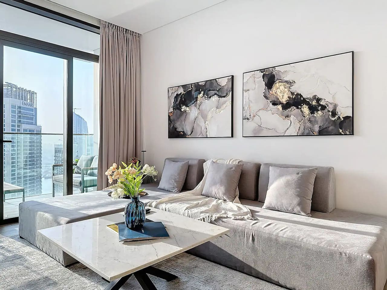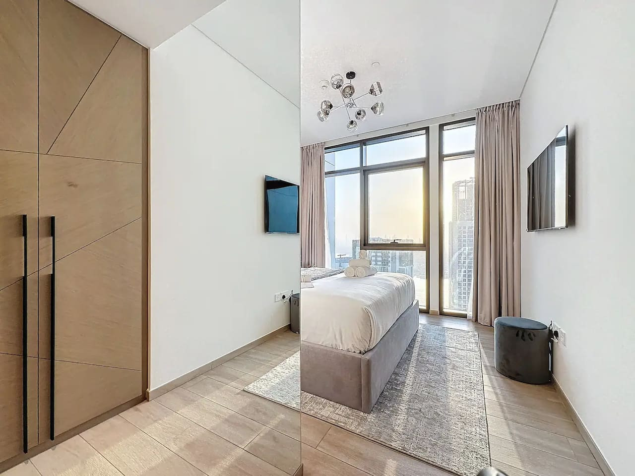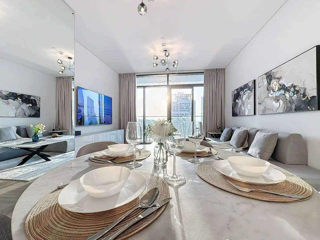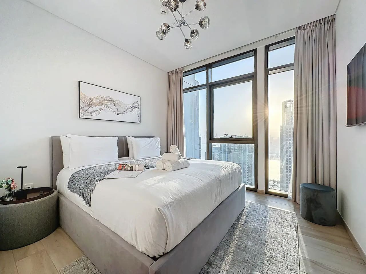 Luxury 5 stars experience in Palace Residences, inspired by Palace Hotel. You will love the facilities of the building in the community of Dubai Creek Harbour and the beautiful views at 42nd floor of the city and surrounding community. Within this prime location, guests have access to a number of amazing facilities like walkways, parks and are close to nearby retail store, restaurants, cafes and more. The building is a 5* branded residence by Emaar. Step into a realm of modern elegance as you enter this beautifully designed, open-plan one-bedroom apartment. The living area exudes sophistication, with tasteful furnishings that include a cozy sofa bed, perfect for accommodating extra guests and a 75” flat-screen TV. Revealing breathtaking views of the Creek, Burj Khalifa, and the iconic Dubai skyline. The fully equipped kitchen is a culinary haven, outfitted with state-of-the-art appliances and all the necessary cookware, utensils, and tableware. Whether you're whipping up a quick breakfast or crafting a gourmet dinner, you'll find everything you need at your fingertips. The adjacent dining table, which comfortably seats four, is the perfect spot to enjoy your meals and savor your culinary creations. Retreat to the tranquil bedroom, featuring a plush king-size bed adorned with high-quality linens, ensuring a restful night's sleep. The ample closet space allows you to unpack and settle in, making you feel right at home from the moment you arrive. This lovely one-bedroom apartment offers: – Fully equipped open plan kitchen with dishwasher and coffee machine – 75" and 50" Samsung smart TVs & Sonos sound system – Modern dining table to 4 people – Furnished balcony – Separate laundry cupboard – Large bathroom with bathtub and essentials Sleeping arrangements: – King-size bed (180x200cm) in the master bedroom – Corvertible sofa bed in the living room (Extra Bed sheet and blankets can be provided) Key features: – High-speed Wi-Fi – 250 Mbps – Hotel amenities – Private parking Building amenities included: – Swimming pool – Gym – Kids Play Area – 24/7 Reception – Private parking Enjoy 20% discount on food and beverages in Palace Hotel We are always available to support face to face or over the phone . Bars, Restaurants, Supermarkets, Promenade and all the main attractions of Dubai Creek Harbour are at walking distance. If you need a taxi you can use the Careem App.