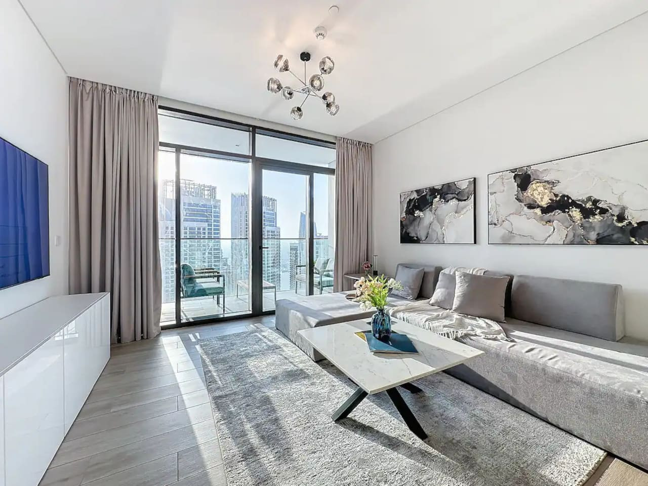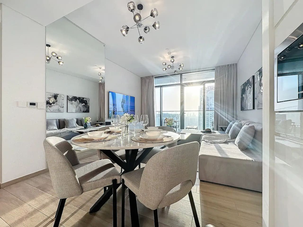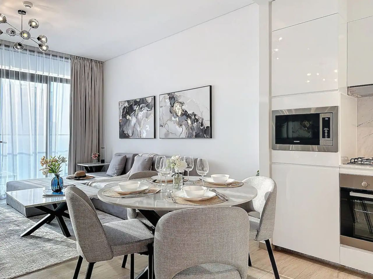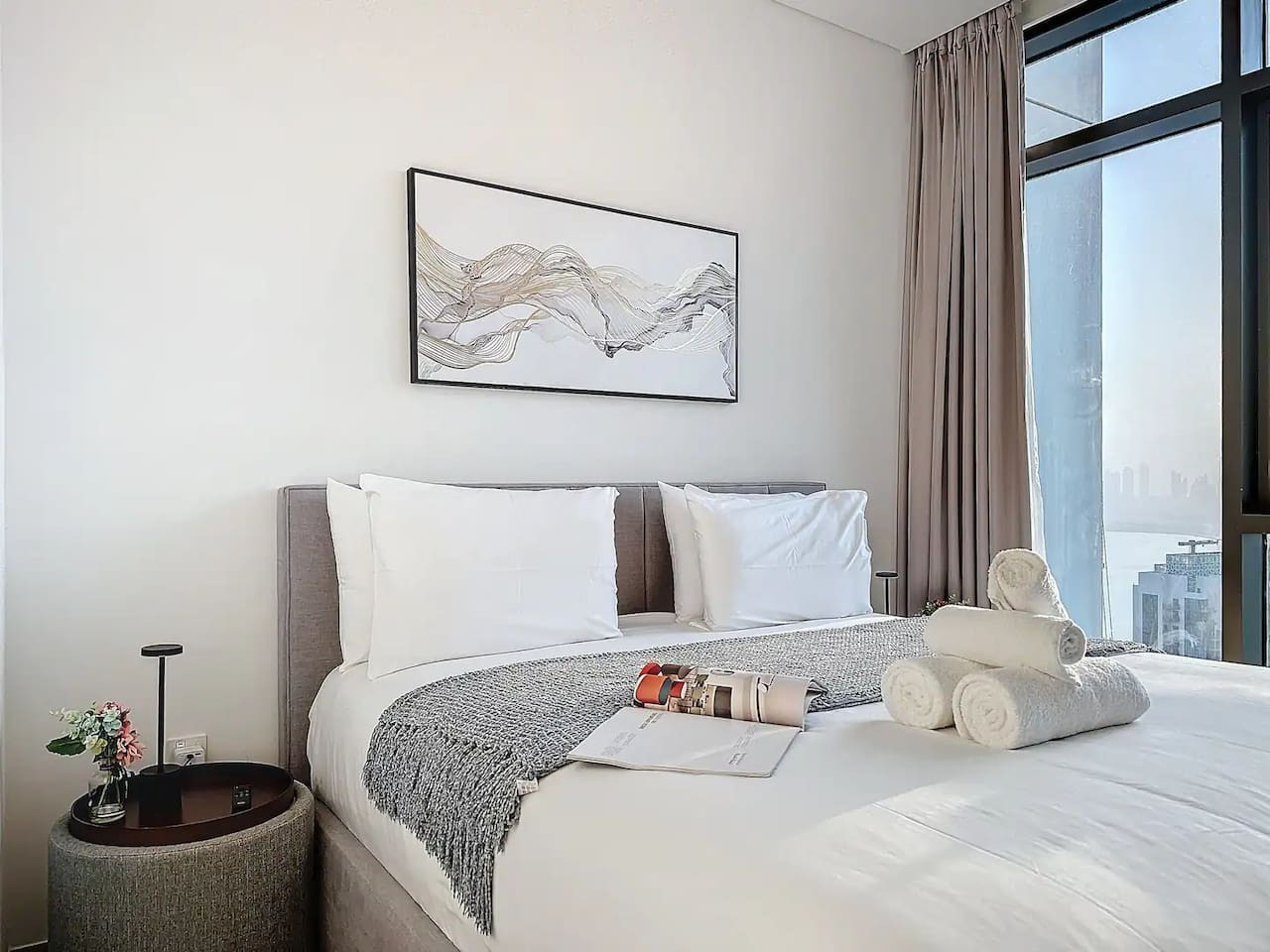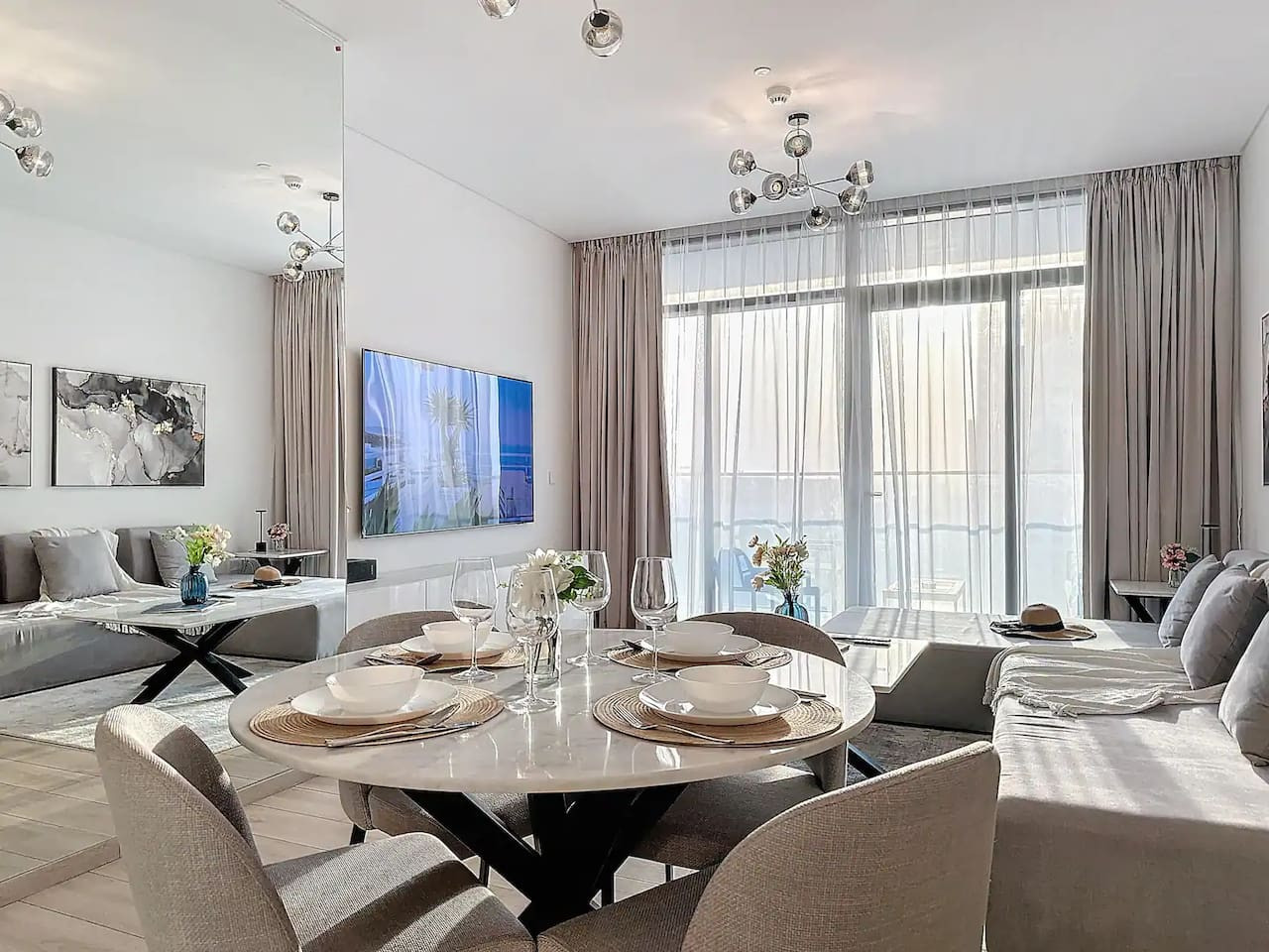 Luxury 5 stars experience in Palace Residences, inspired by Palace Hotel. You will love the facilities of the building in the community of Dubai Creek Harbour and the beautiful views at 42nd floor of the city and surrounding community. Within this prime location, guests have access to a number of amazing facilities like walkways, parks and are close to nearby retail store, restaurants, cafes and more. The building is a 5* branded residence by Emaar. Step into a realm of modern elegance as you enter this beautifully designed, open-plan one-bedroom apartment. The living area exudes sophistication, with tasteful furnishings that include a cozy sofa bed, perfect for accommodating extra guests and a 75” flat-screen TV. Revealing breathtaking views of the Creek, Burj Khalifa, and the iconic Dubai skyline. The fully equipped kitchen is a culinary haven, outfitted with state-of-the-art appliances and all the necessary cookware, utensils, and tableware. Whether you're whipping up a quick breakfast or crafting a gourmet dinner, you'll find everything you need at your fingertips. The adjacent dining table, which comfortably seats four, is the perfect spot to enjoy your meals and savor your culinary creations. Retreat to the tranquil bedroom, featuring a plush king-size bed adorned with high-quality linens, ensuring a restful night's sleep. The ample closet space allows you to unpack and settle in, making you feel right at home from the moment you arrive. This lovely one-bedroom apartment offers: – Fully equipped open plan kitchen with dishwasher and coffee machine – 75" and 50" Samsung smart TVs & Sonos sound system – Modern dining table to 4 people – Furnished balcony – Separate laundry cupboard – Large bathroom with bathtub and essentials Sleeping arrangements: – King-size bed (180x200cm) in the master bedroom – Corvertible sofa bed in the living room (Extra Bed sheet and blankets can be provided) Key features: – High-speed Wi-Fi – 250 Mbps – Hotel amenities – Private parking Building amenities included: – Swimming pool – Gym – Kids Play Area – 24/7 Reception – Private parking Enjoy 20% discount on food and beverages in Palace Hotel We are always available to support face to face or over the phone . Bars, Restaurants, Supermarkets, Promenade and all the main attractions of Dubai Creek Harbour are at walking distance. If you need a taxi you can use the Careem App.