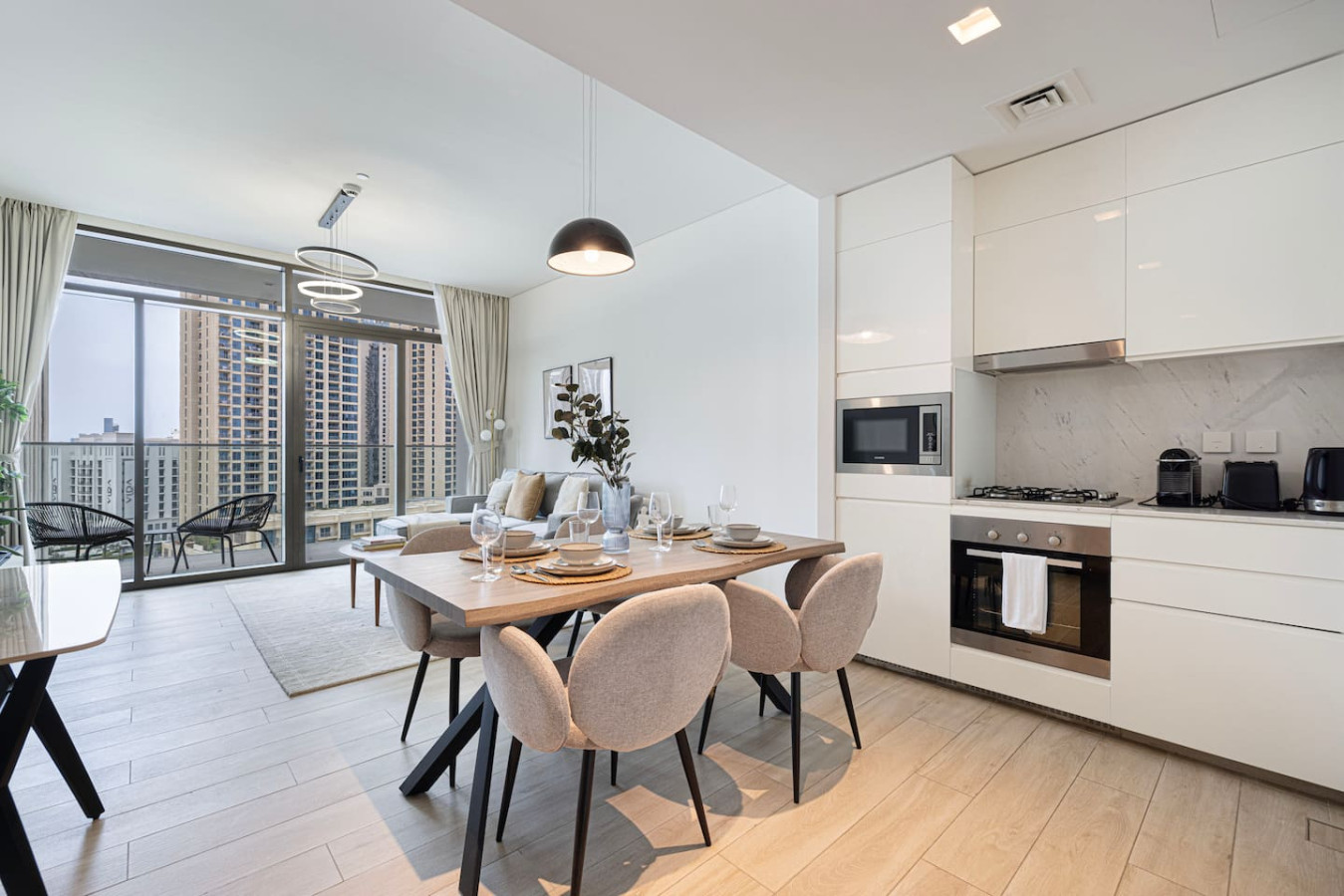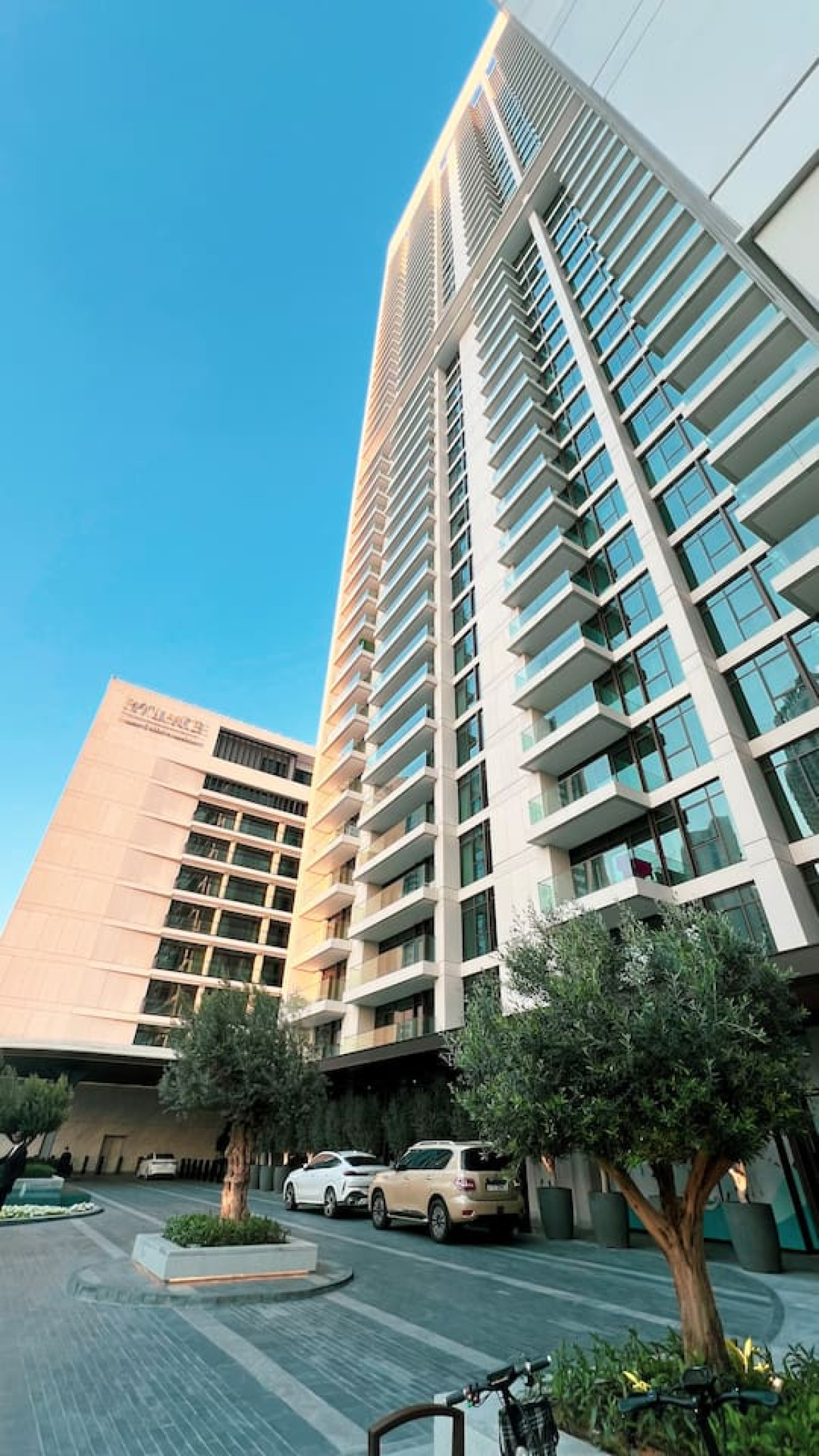 Luxury 5 stars experience in Palace residences, inspired by Palace hotel, you will Love the facilities of the building in community of Dubai Creek Harbour, beautiful views of the city and surrounding community. Within this prime location, guests have access to a number of amazing facilities like walkways, parks and are close to nearby retail store, restaurants, cafes and more. The building is brand new developed by Emaar. Welcome To Dubai 🙂 This Lovely one-bedroom Apartment offer: – Fully equipped open plan kitchen with dishwasher and coffee machine – sofa Bed – Smart TV – Modern dining table to four people – Furnished balcony – Separate laundry cupboard Sleeping arrangements: Master Bedroom: – Queen-sized bed – En-suite bathroom – Bathroom essentials Living Room: – Sofa Bed – Extra Bed sheet and blankets can be provided Key features: – High-speed Wi-Fi – Hotel amenities – private parking Building features: – Swimming pool – Gym – Kids Play Area enjoy 20% discount on food and beverages in Palace hotel Pool, gym and parking We are always available to support face to face or over the phone . Creek Harbour developed by Emaar Bars, Restaurants, Supermarkets, Promenade and all the main attractions of Dubai Creek Harbour are at walking distance. If you need a taxi you can use the Careem App.