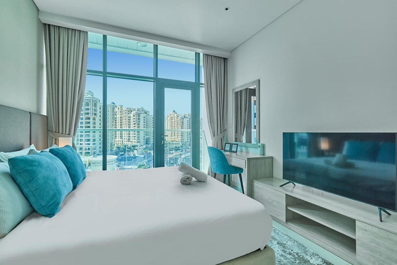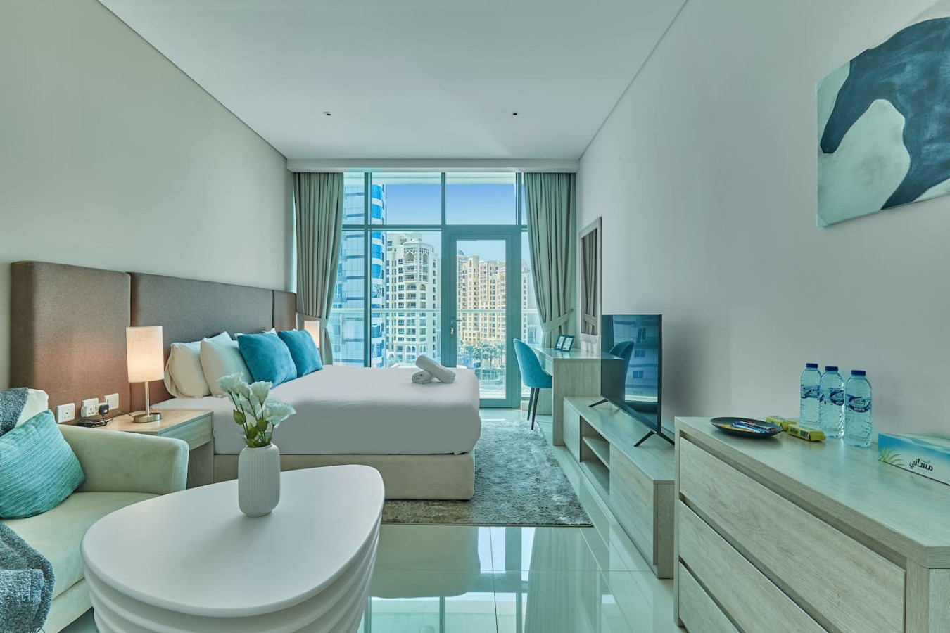 Seven Palm residence is the destination of exceptional opulence exclusive even for Dubai in the heart of Jumeirah Palm and at the famous West palm beach and free private beach of the building. 3 minutes walk to Nakheel mall . Seven Palm has two buildings, five stars hotel and the residence building, so you can enjoy all the five stars hotel facilities such as like swimming pool with amazing view Bars, Restaurants, Gym and more. this studio is brand new. Welcome to Dubai This apartment is brand new, delivered in November 2023 . Free Private Beach Access located in one of the most premium buildings in Jumeirah Palm area, Seven Palm, this gorgeous studio exemplifies the glamour and luxurious lifestyle of Dubai. It is literally located in the West Palm beach, which is the one of the best beaches in Dubai with many options of beach clubs, restaurants and bars, Also, the tower is just 150 meters away from Nakheel Mall. Free Facilities in the building include a fitness center, five stars Pool Curtains are 100% blacks-out and the apartment has queen size bed 160×200 cm and we can provide mattress to accommodate 3 guests. The kitchen is fully equipped with high-end appliances, Our apartments are exclusively designed for your optimal privacy, also protection 24 hours’ security available in the building, you will have a key access card which allows you to utilize the private building parking, pool and gym . The apartment itself is secluded and offers you prime privacy for your relaxation. As soon as you arrive and if guest prefer to be welcomed by our guest experience representative, who will be at your service 24 hours a day regarding any matter we are more than happy to do it. One day prior to your departure we will contact you for your check out details. As we truly respect your privacy, we will not cause any disturbance to you during the stay, unless you have requested it. •Complimentary Wifi, cable TV and Netflix with Smart TV. •24/7 concierge and security service •Complimentary drinks, tea & coffee •Complimentary parking •Complimentary access to gym, pool and all other building facilities .The wardrobes are built in. wish you enjoy your stay and looking forward to welcome you in Dubai. Guests have full access to all the five stars hotel facilities such as gym, pool and parking and much more and private beach for free Guests can contact us at anytime through private message, call or personally Seven Palm is nestled on the trunk of Palm Jumeirah, opposite Nakheel Mall and next to DUKES The Palm hotel; residents will be spoilt for choice with dining and entertainment options. Seven Palm offers breathtaking views of the Arabian Ocean, Marina skyline, the iconic Burj Al Arab and the Dubai Eye Walking or by Taxi or Metro