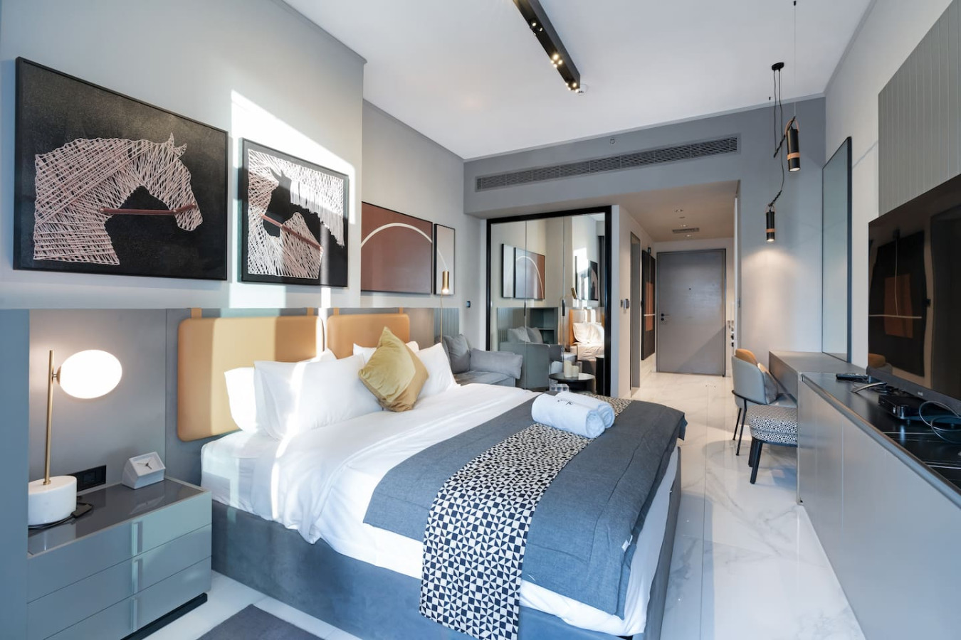 Its 500 meters to Burj Khalifa, Burj Khalifa & Dubai mall fountain. with spectacular downtown views from the balcony. Fantastic amenities in the building: – High-speed WiFi – Gym – Free parking – Infinity pool – Sauna and steam room – Spacious Balcony – Hotel-quality linens/towels Restaurants, supermarket, coffee shops, Bars, Dubai metro, car rental are just walking distance from the building. This beautifully furnished studio apartment will make you feel like you are in a luxurious 5 star hotel. The apartment also comes with a parking for your car, a swimming pool, a gymnasium, a kids area and a business center with cafe de Paris int he same building. There is king size bed and Sofa bed also We can also provide a baby crib. Our kitchen is fully equipped with everything you may need, with Coffee machine, a toaster, kettle, serving plates, oven plates and a lot more. We provide for you all amenities including fresh towels, clean linen, water, coffee, tea, shampoo, conditioner, shower gel, body cream and others. located in MAG318 tower. Guest will have access to all the facilities in the building (GYM,Inifinity pool, Sauna & Steam room). Inside apartment you will have kitchen, where all the facilities available for cooking. A huge balcony to sit, relax and enjoy the beautiful evening view from the balcony . we will be available to meet in person or via phone or through the app Dubai downtown has Dubai mall, the fountain and Burj Khalifa, and MAG318 is just 5 minutes walking distance to Dubai Mall, Burj Khalifa. Also, a lot of restaurants, cafes, supermarkets, Laundry are nearby, the metro station is also nearby. Taxi available 24hours, scooter, Metro, and walking *Please note that there is a charge of AED 500 for each lost access card or set of keys **Please be advised that smoking inside the apartment is strictly prohibited. Failure to comply will result to fine of 1000 AED