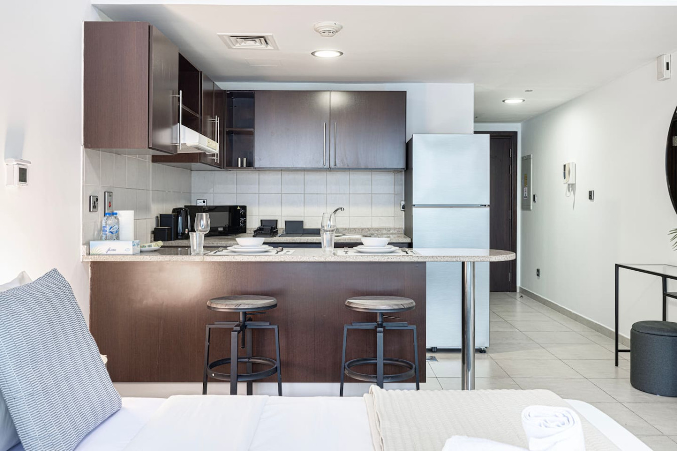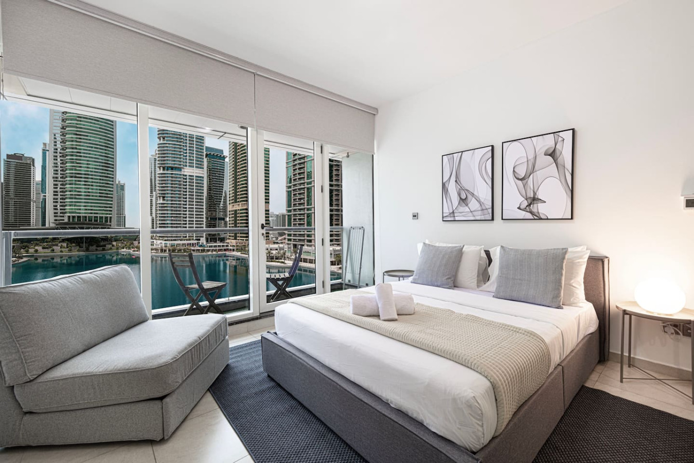 Enjoy a stylish experience at this centrally located apartment. fully renovated and newly furnished Studio in Dubai Arch Tower. The Studio is located within walking distance from the metro station in Jumeirah Lakes Towers (JLT) with queen Size bed, Single Sofa bed and amazing view over the lake. this studio is great for individuals, couple or 2 friends looking to experience a calming, quiet and productive vibe in the hub of the lively city. Welcome to Dubai 🙂 This newly furnished apartment is located in one of the most premium buildings in JLT area The Arch tower ! This gorgeous studio exemplifies the glamour and luxurious lifestyle of Dubai. It is literally located next to the lake and the metro you can move around in the JLT using scooters and taxis are also available 24 hours. Free Facilities in the building include a fitness centre and pool. Curtains are 100% blacks-out and the apartment has queen size bed 160×200 cm and one single sofa bed which can be converted into bed. The kitchen is fully equipped with high-end appliances , Our apartments are exclusively designed for your optimal privacy, also protection 24 hours’ security available in the building, you will have a key access card which allows you to utilize the private building parking, pool and gym . The apartment itself is secluded and offers you prime privacy for your relaxation. As soon as you arrive and if guest prefer to be welcomed by our guest experience representative, who will be at your service 24 hours a day regarding any matter we are more than happy to do it. One day prior to your departure we will contact you for your check out details. As we truly respect your privacy we will not cause any disturbance to you during the stay, unless you have requested it. •Complimentary Wifi, cable TV and Netflix with Smart TV. •24/7 concierge and security service •Complimentary drinks, tea & coffee •Complimentary parking •Complimentary access to gym, pool and all other building facilities .The wardrobes are built in please note that there might be some noise of renovation work going on from 10 AM to 4 pm weekdays only, due to renovation at lower floor. wish you enjoy your stay and looking forward to welcome you in Dubai.. Guests have full free access to gym, pool and parking Guests can contact us at anytime through private message, call, Whatsup or personally **Please be advised that smoking inside the apartment is strictly prohibited.
