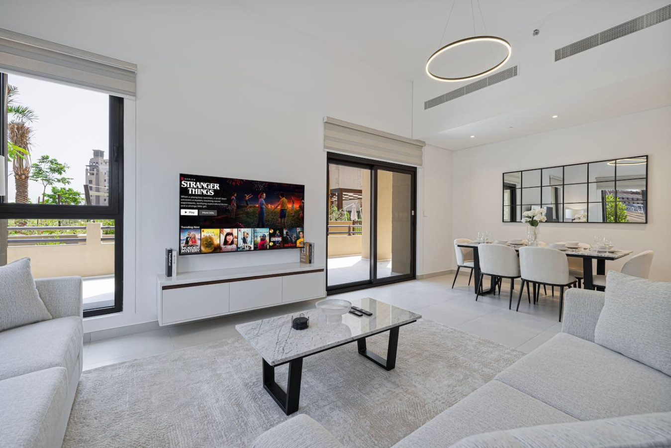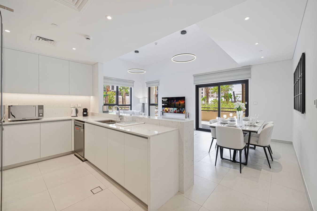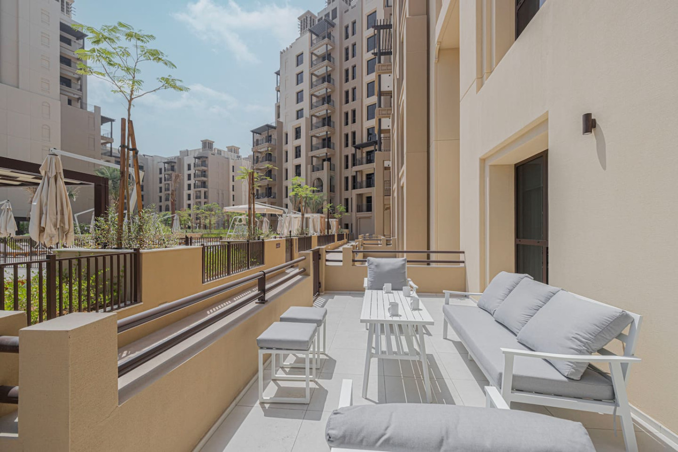Luxury 2BR apartment in Madinat Jumeirah Living, Jaddel 3, just steps from the iconic Burj Al Arab. next tot he beaches, Located on the ground floor with a spacious terrace and direct pool access. Includes maid's room, 180 sqm of space, and a prime view. Only 5 minutes from Mall of the Emirates for top shopping and entertainment. Ideal for a stylish, convenient Dubai stay. Brand new project has been delivered in 2025 by Meras called Madinat Jumeirah Living . Luxurious 2BR Apartment with Maid’s Room | Steps from Burj Al Arab & the Beach Welcome to Project Jadeel 3 by Meraas, a brand-new luxury development delivered in 2025—perfectly located just across the street from the iconic Burj Al Arab, Madinat Jumeirah, and within walking distance to the beach. This spacious 180 m² apartment is beautifully furnished in a chic, modern style and thoughtfully equipped for a truly relaxing stay. Please note that we have building which is under construction in the same area however there is no noise at all inside the apartment, only when you set at terrace during working hours you might hear minor sounds . What you'll love about this space: 🏡 2 Bedrooms + Maid’s Room Master bedroom with a plush queen-size bed Second bedroom with two single beds Maid’s room with a single bed 🛋️ Stylish Living Area Modern minimalist design Comfortable sofa-bed Four-seater dining table Smart TV 🍽️ Fully Equipped Kitchen Stove/oven, refrigerator, microwave, coffee machine Full set of cookware and appliances 🛁 3 Spacious Full Bathrooms 🧺 In-unit washing machine ❄️ Air conditioning throughout 📶 High-speed Wi-Fi 🌴 Private Terrace Overlooking the community pool — perfect for morning coffee or evening relaxation Whether you're here for a relaxing getaway or a business trip, this apartment offers the perfect combination of comfort, style, and unbeatable location. ✨ Don’t miss your chance to experience Dubai in true luxury. Welcome to your dream stay. Welcome to Dubai. you can access for free the gym, the Swimming pool, the playground and parking spot belong to the apartment Always available either face to face or through phone to answer all guest questions and requirements. Smoking allowed on balcony only. Smoking inside the apartment will attract a fine of AED 1000. Please do not wipe off make up with towels. will need a copy of passport of all guests checking in before arrival please no loud music is allowed