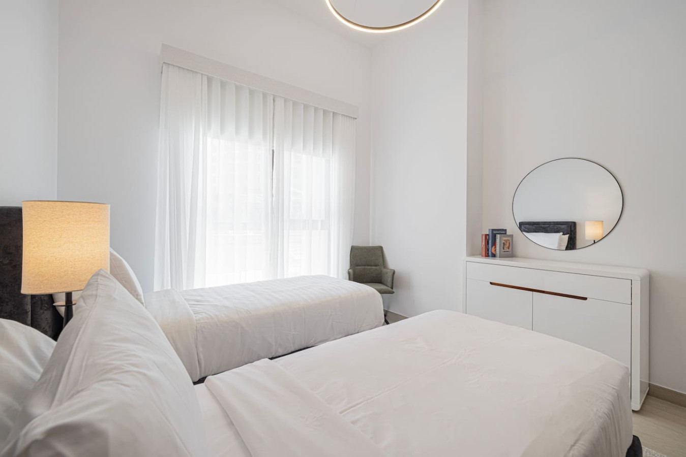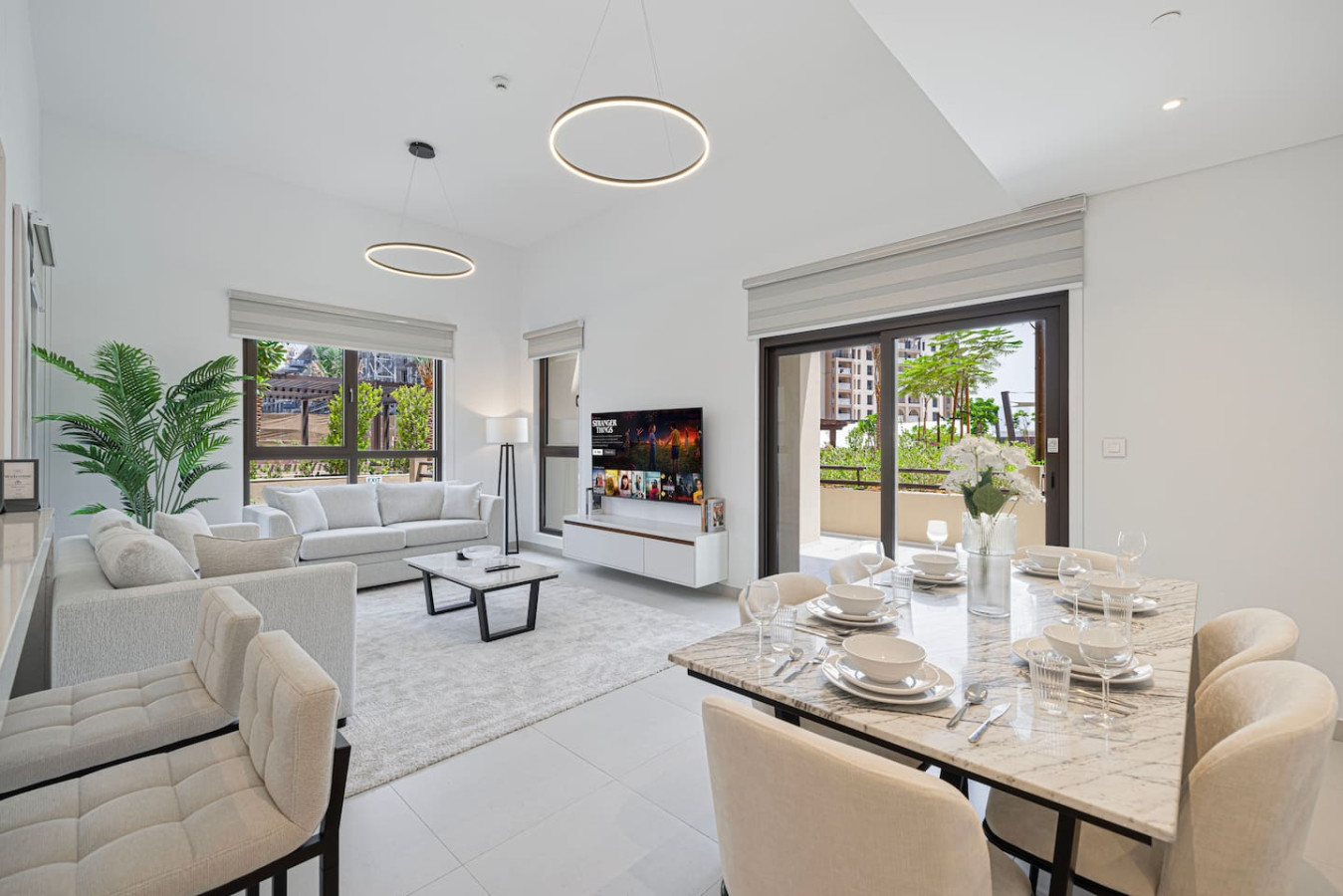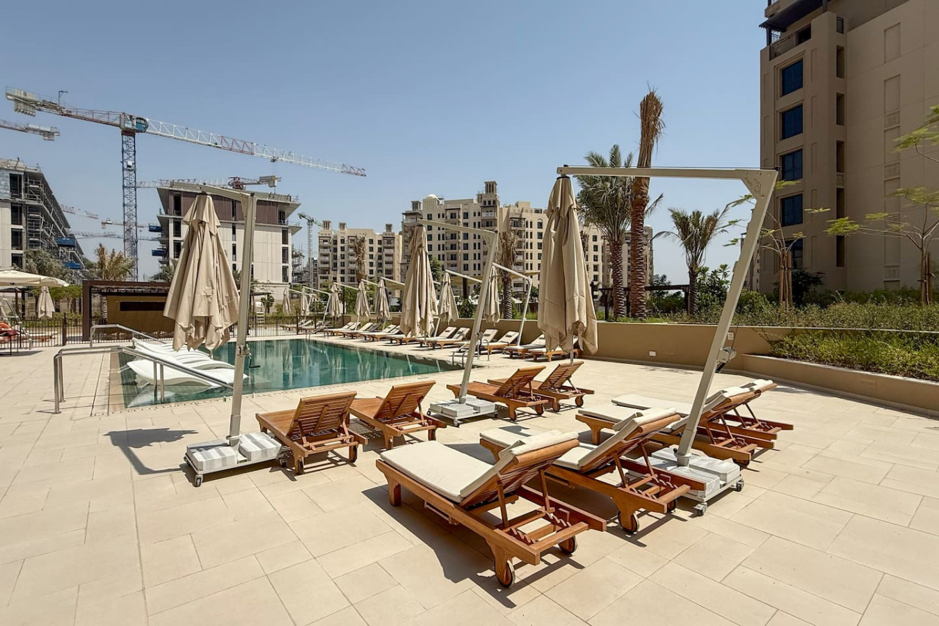 Luxury 2BR apartment in Madinat Jumeirah Living, Jaddel 3, just steps from the iconic Burj Al Arab. next tot he beaches, Located on the ground floor with a spacious terrace and direct pool access. Includes maid's room, 180 sqm of space, and a prime view. Only 5 minutes from Mall of the Emirates for top shopping and entertainment. Ideal for a stylish, convenient Dubai stay. Brand new project has been delivered in 2025 by Meras called Madinat Jumeirah Living . Luxurious 2BR Apartment with Maid’s Room | Steps from Burj Al Arab & the Beach Welcome to Project Jadeel 3 by Meraas, a brand-new luxury development delivered in 2025—perfectly located just across the street from the iconic Burj Al Arab, Madinat Jumeirah, and within walking distance to the beach. This spacious 180 m² apartment is beautifully furnished in a chic, modern style and thoughtfully equipped for a truly relaxing stay. Please note that we have building which is under construction in the same area however there is no noise at all inside the apartment, only when you set at terrace during working hours you might hear minor sounds . What you'll love about this space: 🏡 2 Bedrooms + Maid’s Room Master bedroom with a plush queen-size bed Second bedroom with two single beds Maid’s room with a single bed 🛋️ Stylish Living Area Modern minimalist design Comfortable sofa-bed Four-seater dining table Smart TV 🍽️ Fully Equipped Kitchen Stove/oven, refrigerator, microwave, coffee machine Full set of cookware and appliances 🛁 3 Spacious Full Bathrooms 🧺 In-unit washing machine ❄️ Air conditioning throughout 📶 High-speed Wi-Fi 🌴 Private Terrace Overlooking the community pool — perfect for morning coffee or evening relaxation Whether you're here for a relaxing getaway or a business trip, this apartment offers the perfect combination of comfort, style, and unbeatable location. ✨ Don’t miss your chance to experience Dubai in true luxury. Welcome to your dream stay. Welcome to Dubai. you can access for free the gym, the Swimming pool, the playground and parking spot belong to the apartment Always available either face to face or through phone to answer all guest questions and requirements. Smoking allowed on balcony only. Smoking inside the apartment will attract a fine of AED 1000. Please do not wipe off make up with towels. will need a copy of passport of all guests checking in before arrival please no loud music is allowed