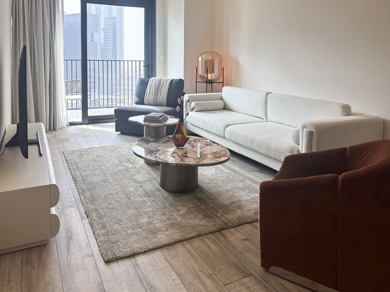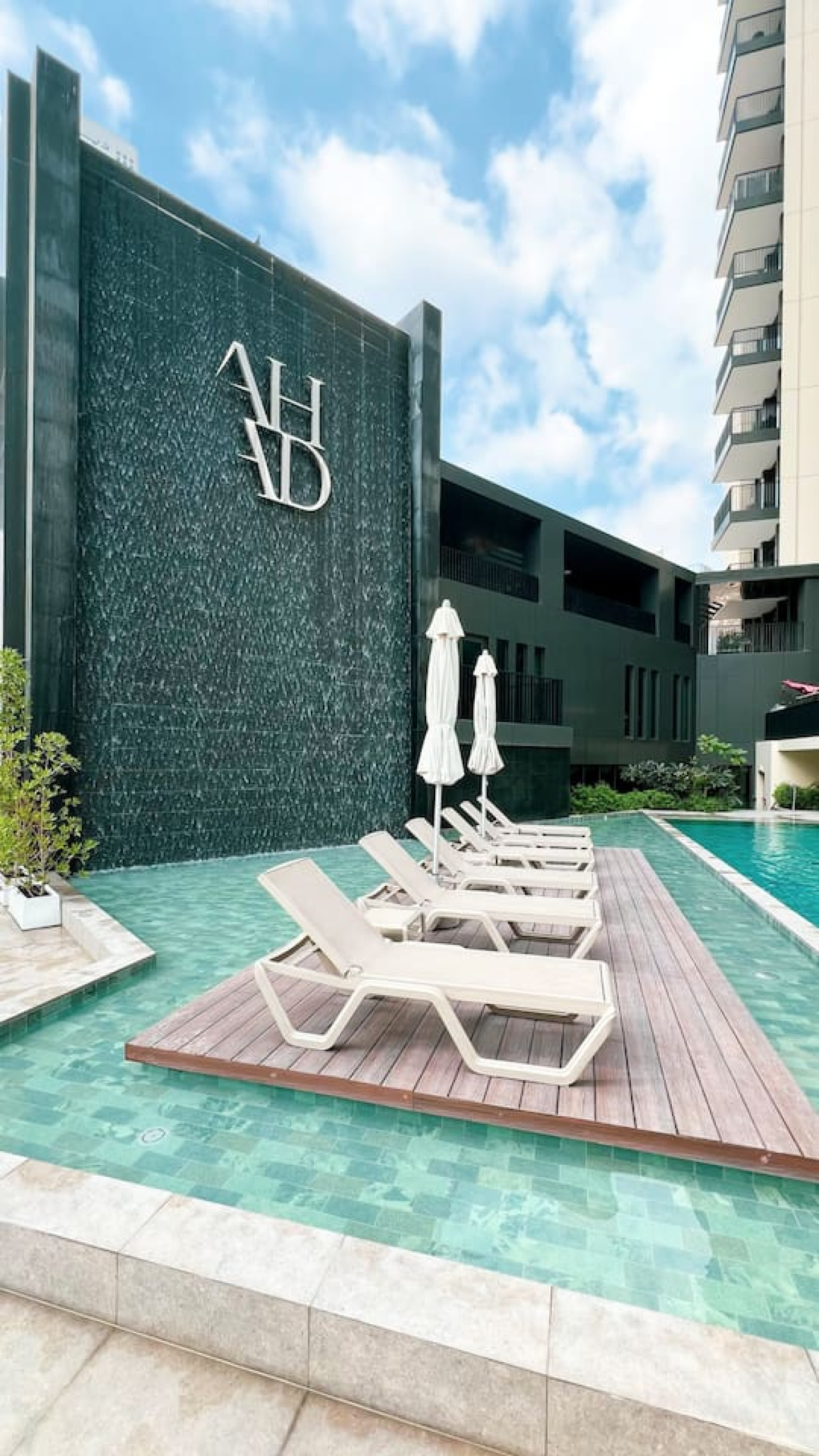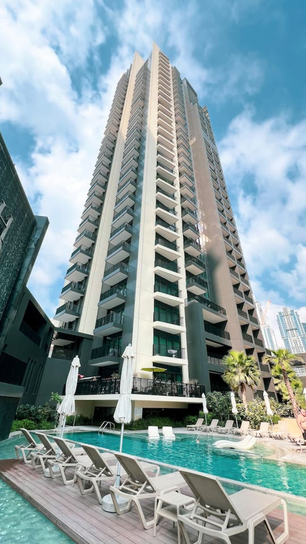 If you're looking for a modern Brand New One-bedroom apartment in Business Bay, this is the one for you! Located centrally in the heart of Business Bay in Ahad Tower, you will be in close to Dubai Mall, Burj Khalifa and 10 Minutes' walk to the metro station. Enjoy Dubai Welcome to your modern getaway in the heart of Business Bay! – AHAD Tower (the tower is new) This brand-new one-bedroom apartment in Ahad Tower offers the perfect blend of comfort, convenience, and city views — ideal for business travellers, couples, or small groups. ✨ Apartment Highlights: • 🛏️ Spacious bedroom with a comfortable queen-sized bed • 🛋️ Sofa bed in the living area, perfect for an extra guest (accommodates up to 3 guests total) • 🌇 Stunning Business Bay views from your private balcony • 🍳 Fully equipped modern kitchen with everything you need for short or long stays • 🚿 Sleek, brand-new bathroom with high-quality finishes • 📺 Smart TV & high-speed Wi-Fi • ❄️ Central air conditioning • 🏋️ Access to building amenities – gym, pool, and 24-hour security 🚆 Location: Just a few minutes’ walk to the Business Bay Metro Station, making it easy to reach Downtown Dubai, Burj Khalifa, Dubai Mall, and other major attractions. Cafes, supermarkets, and restaurants are right around the corner! 🌟 Whether you’re visiting for business or leisure, this apartment offers the perfect balance of luxury, location, and comfort. Welcome to Dubai Guests have full free access to pool, gym and parking we are always available to support face to face or over the phone . In the heart of Dubai Downtown across the street from Dubai Mall and in Burj Khalifa Boulevard Metro or taxi or bicycle or you can also rent a scoter. *Please note that there is a charge of AED 500 from your deposit for each lost access card or set of keys **Please be advised that smoking inside the apartment is strictly prohibited. Failure to comply will result to for 1500 AED fine. Please share your passport copies with us before arrival .