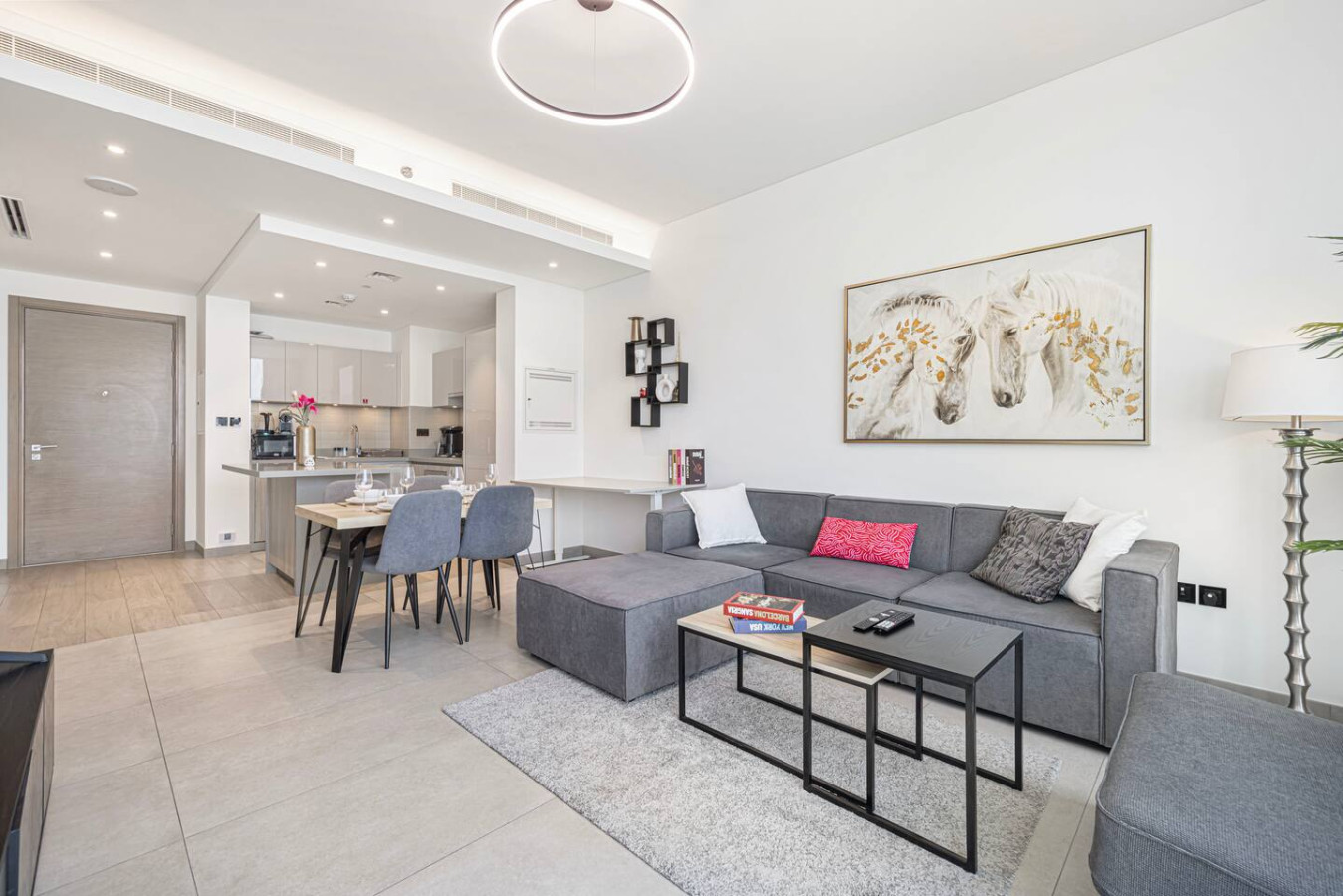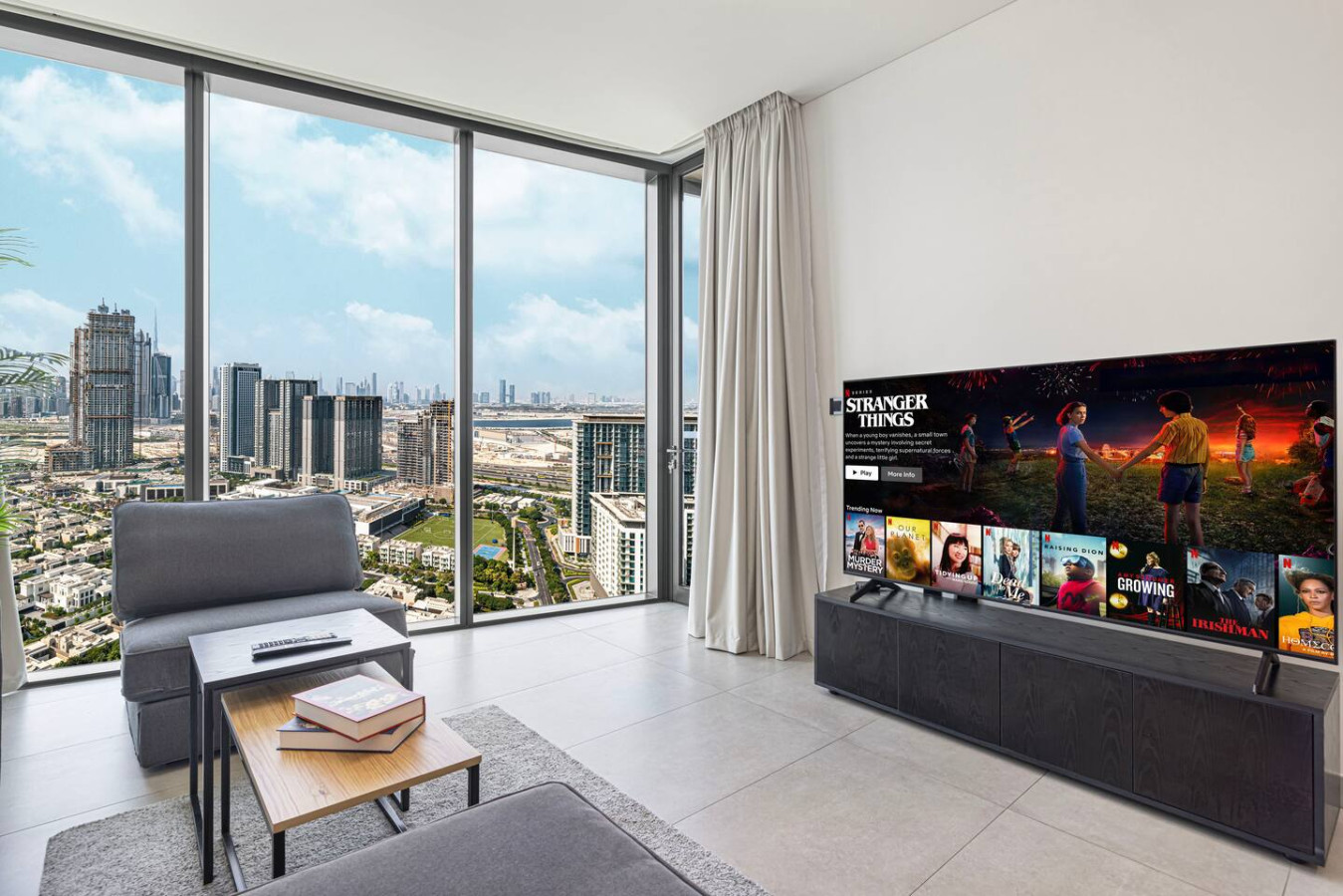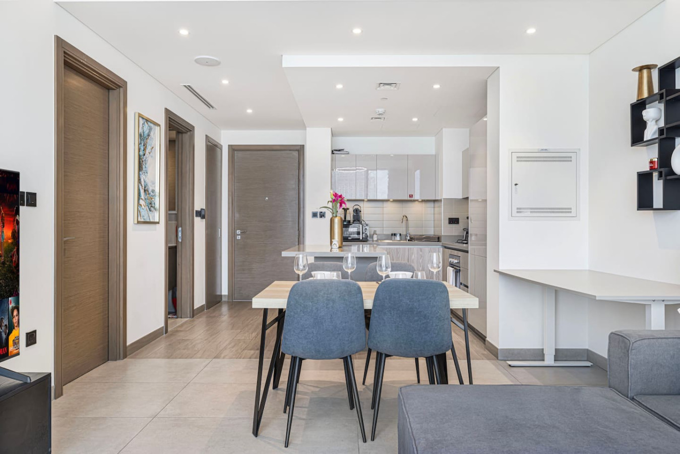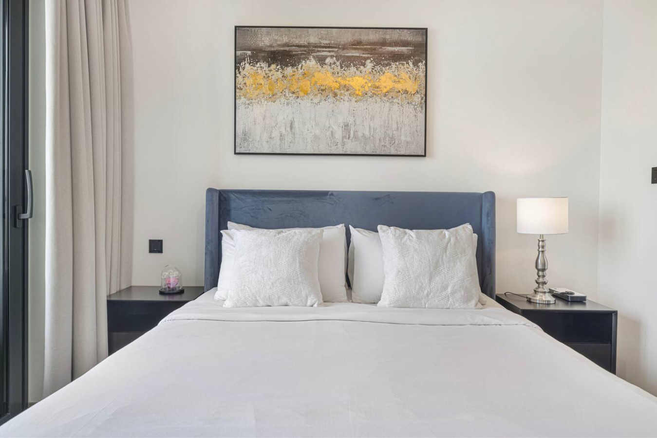 Welcome to your home away from home in the heart of Dubai. This elegant 1-bedroom apartment with single sofa bed in the living room, in the prestigious Waves Grande at Sobha Hartland blends modern comfort with resort-style amenities, creating the perfect stay. Enjoy a fully equipped kitchen, and a cozy bedroom for restful nights. Dive into the infinity swimming pool. Its ideal location provides easy access to key parts of the city. Everything you need right at your doorstep. Welcome to Dubai Home sleep 3 adults+1 child at 33rd floor with uninterrupted, panoramic views of the Dubai skyline. Fully equipped kitchen comes with completely stocked cooking needs including selection of pots, pans, serving dishes, platters, cookie trays and more, refrigerator, oven, sink, dishwasher, microwave, kettle. Our spacious 1-bedroom Dubai apartment is furbished with lovely furniture and decorations would undoubtedly make you feel at home – Brand new furniture and appliances – One bedroom with king bed – Living Room with Sofa Bed and Sofa – Large living area/dining area – Large smart TV in the living room and the bed room – Fully equipped kitchen – Brand NEW high-end GYM – Indoor children's play are – Large balcony -Full amenities, towels, shampoo, coffee, water, tea provided ect. -High Speed internet -Parking space – Two pools with kids play area and Sauna and Gym with free access welcome to Dubai 🙂 Guests have full access to pool, gym and parking is on request in the building. We are always available to support face to face or over the phone . Meydan area Taxi or by walk